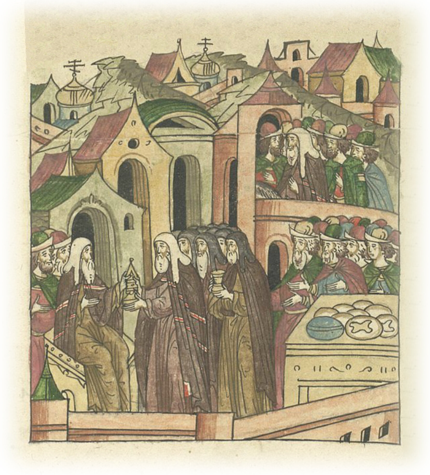 В 6849 (1341) году преосвященный Феогност, митрополит Киевский и всея Руси, пошел в Новгород Великий с множеством церковного причта и со многими своими слугами. И было тяжко бремя – содержать их владыке Новгородскому, и монастырям много (пришлось дарить) даров.