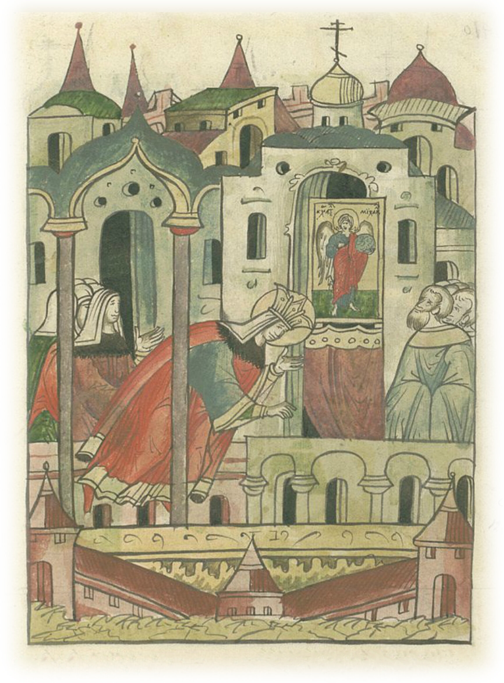 О великой княгине Евдокии, супруге великого князя Дмитрия Ивановича Донского. Княгиня ставит образ ангела Господня в своей церкви Рождества Пресвятой Богородицы.