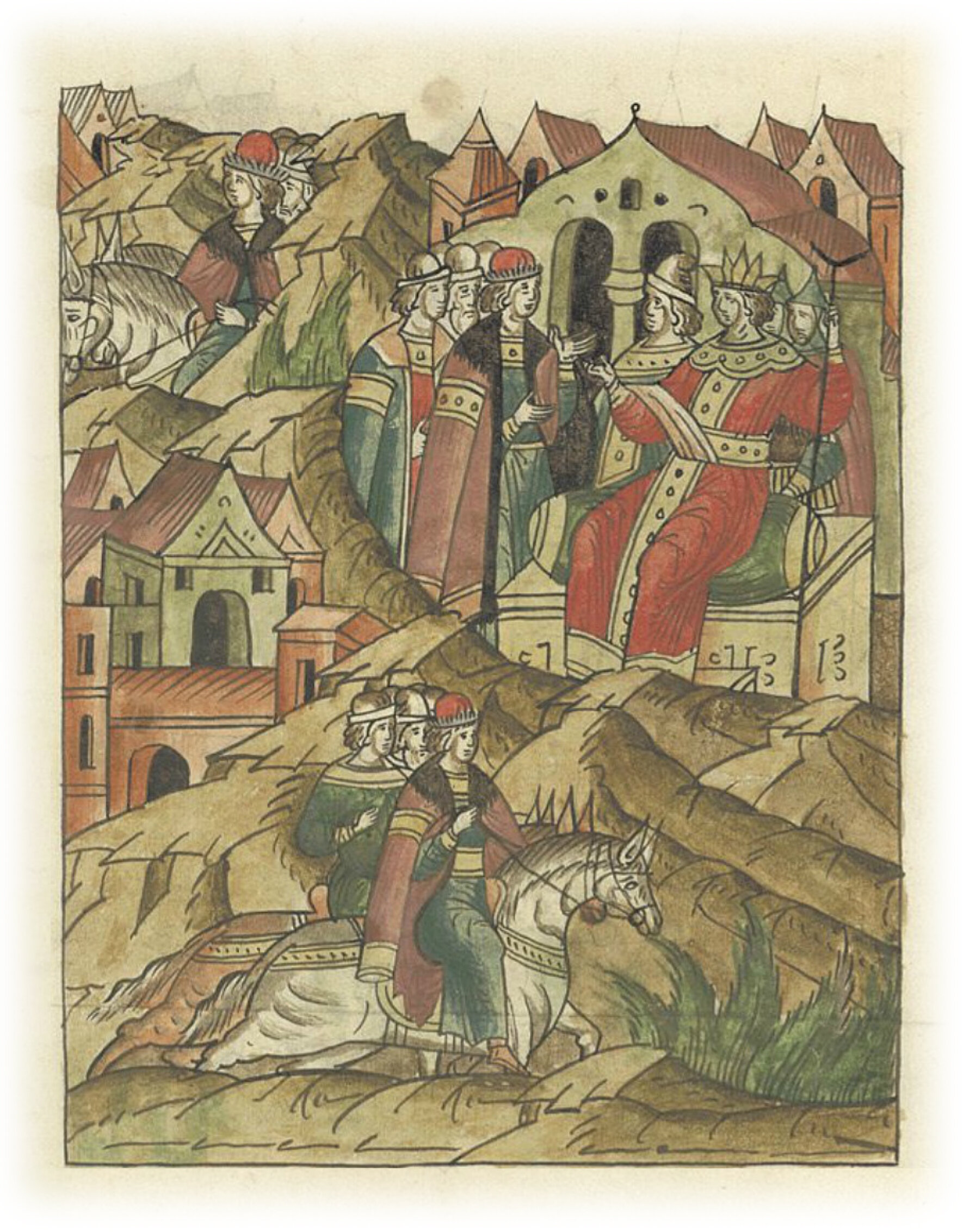 Князь Глеб Василькович идет в Орду к царю Сартаку, сыну Батыя. Тот с почестями отпускает его в свою отчину.