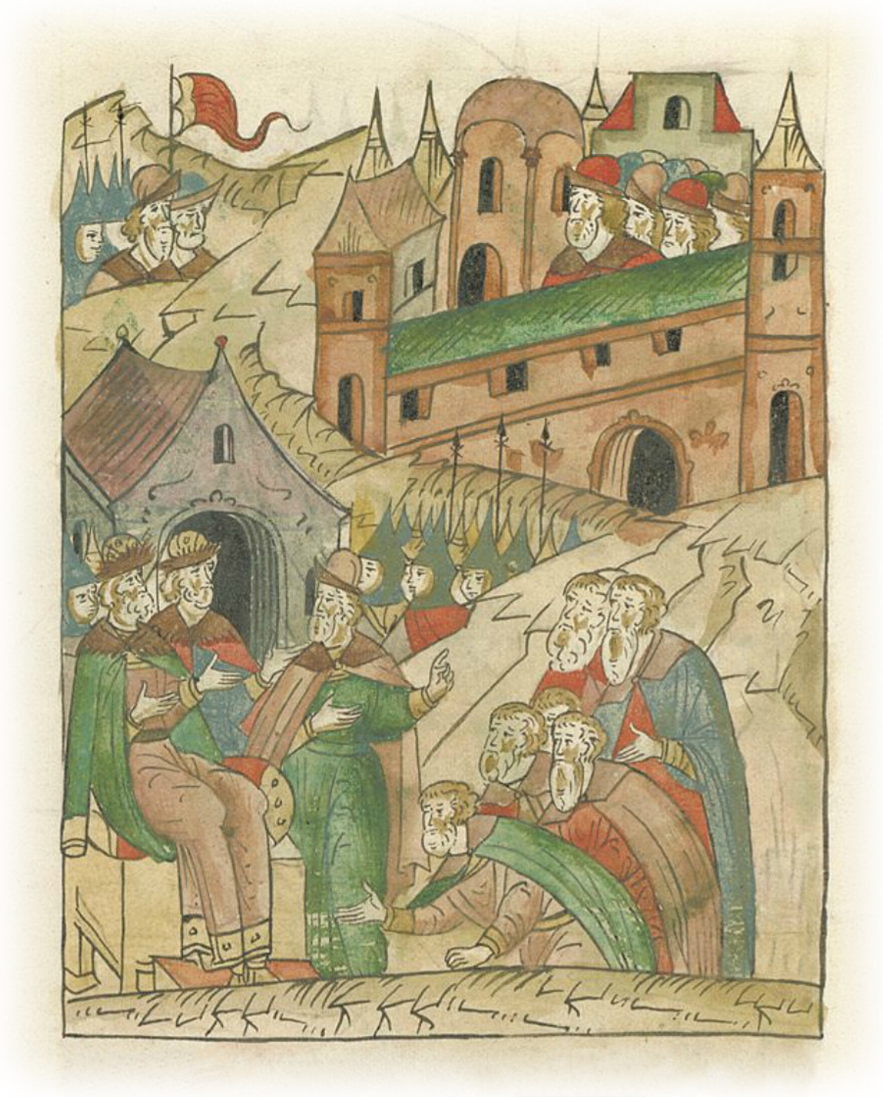 Взятие великим князем Иваном Васильевичем Твери. Тверские князья и бояре бьют челом великому князю, просясь к нему на службу.