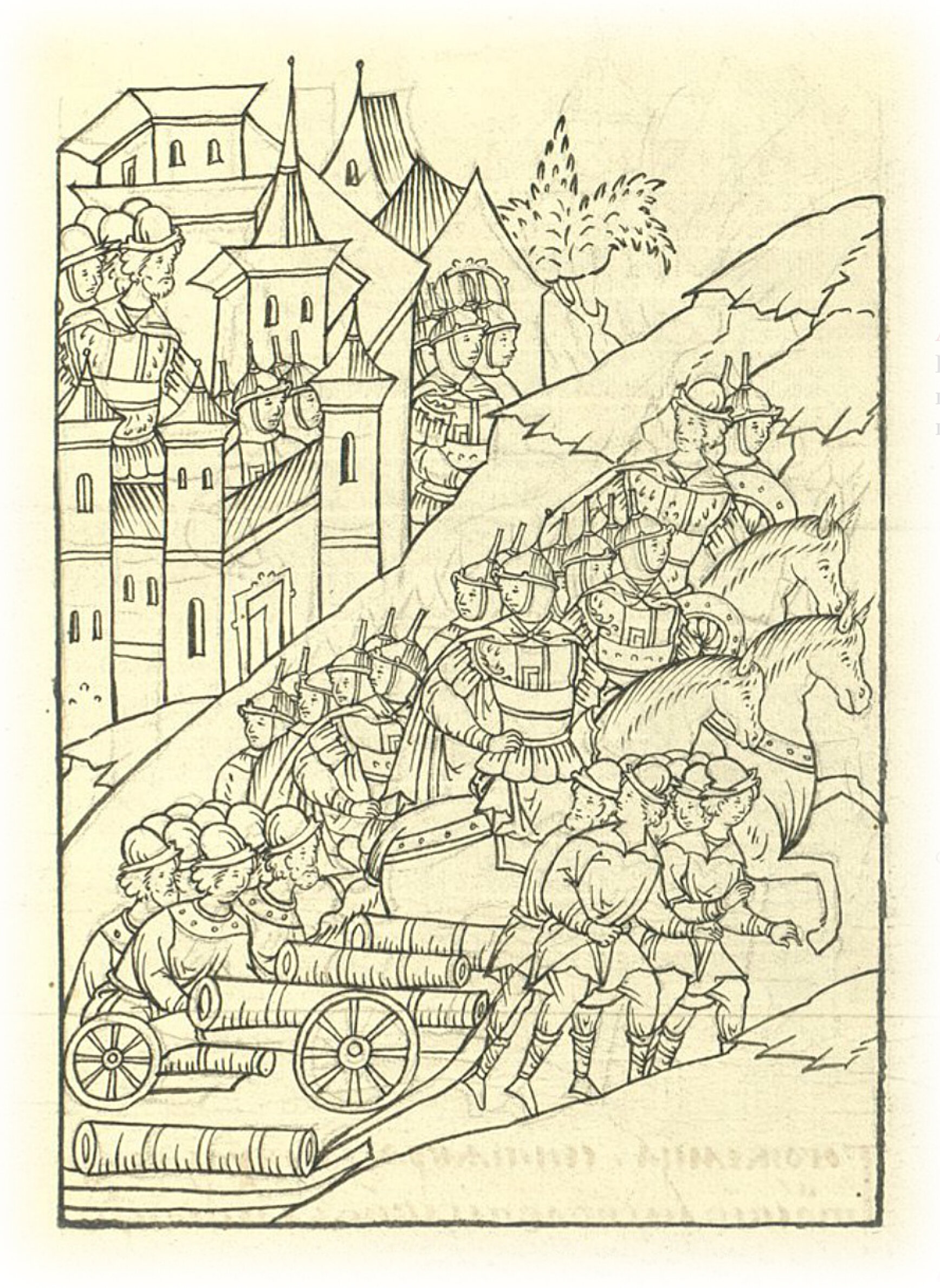 Языки говорят воеводам царя Ивана Васильевича, что магистр окопался большим рвом вокруг города Рындола, бьет из пушек и пищалей и приступает к Рындолу.