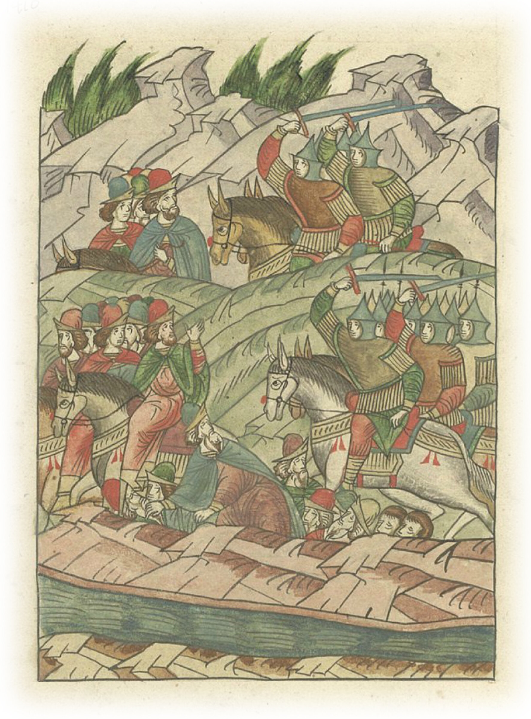 А татары все преследовали их, убивая многих, там был убит князь Семен Васильевич, множество князей и бояр, вельмож и воевод пали от ударов острых измаильтянских мечей.