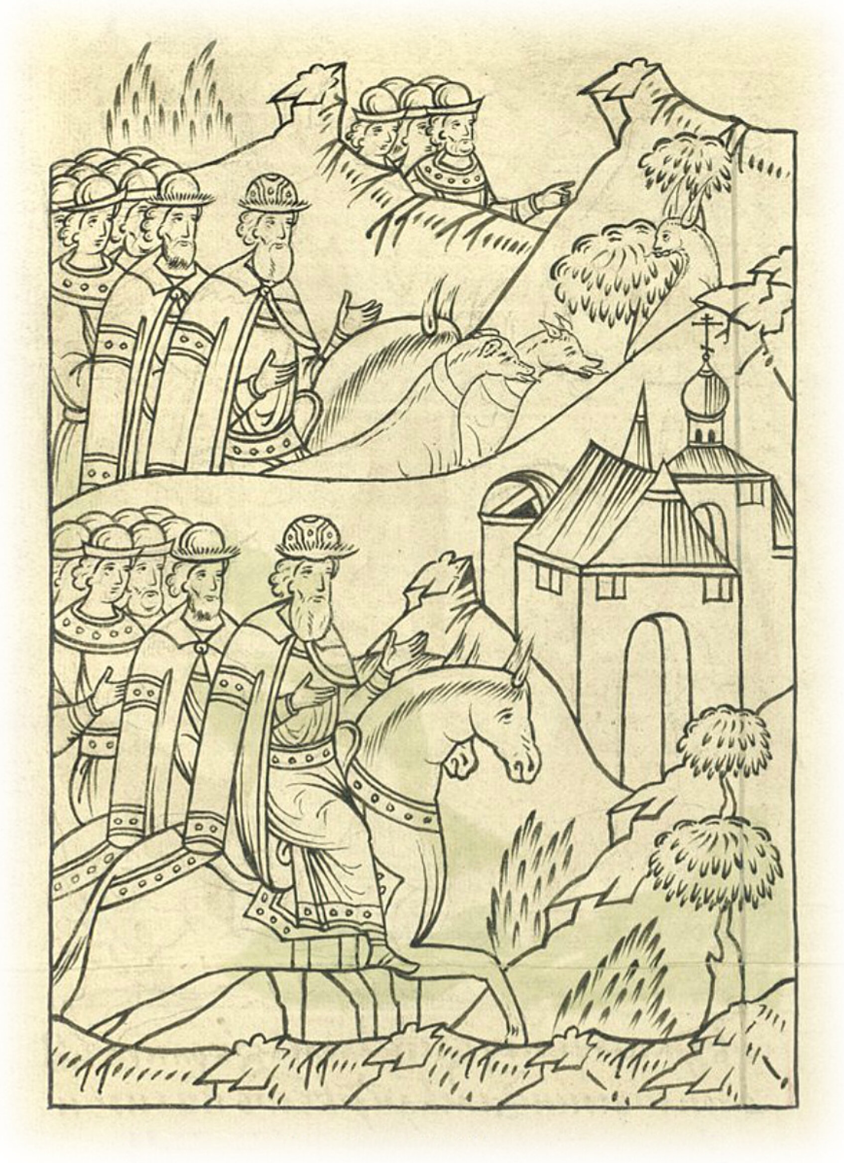Немного поохотившись, ееликий князь Василий Иванович с братом князем Андреем Ивановичем возвращаются в Колпь.