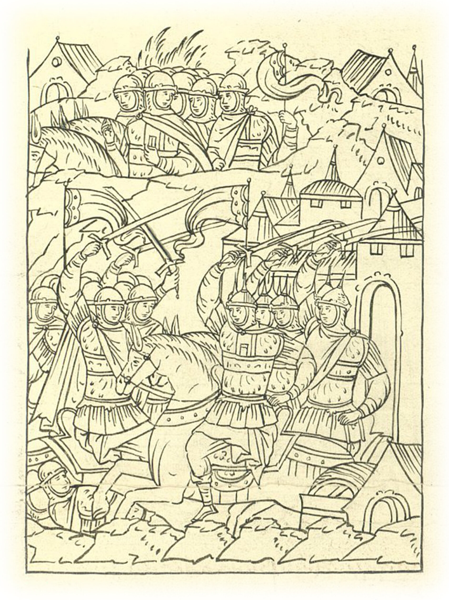 Люди великого князя отбивают литовцев от Смоленска.