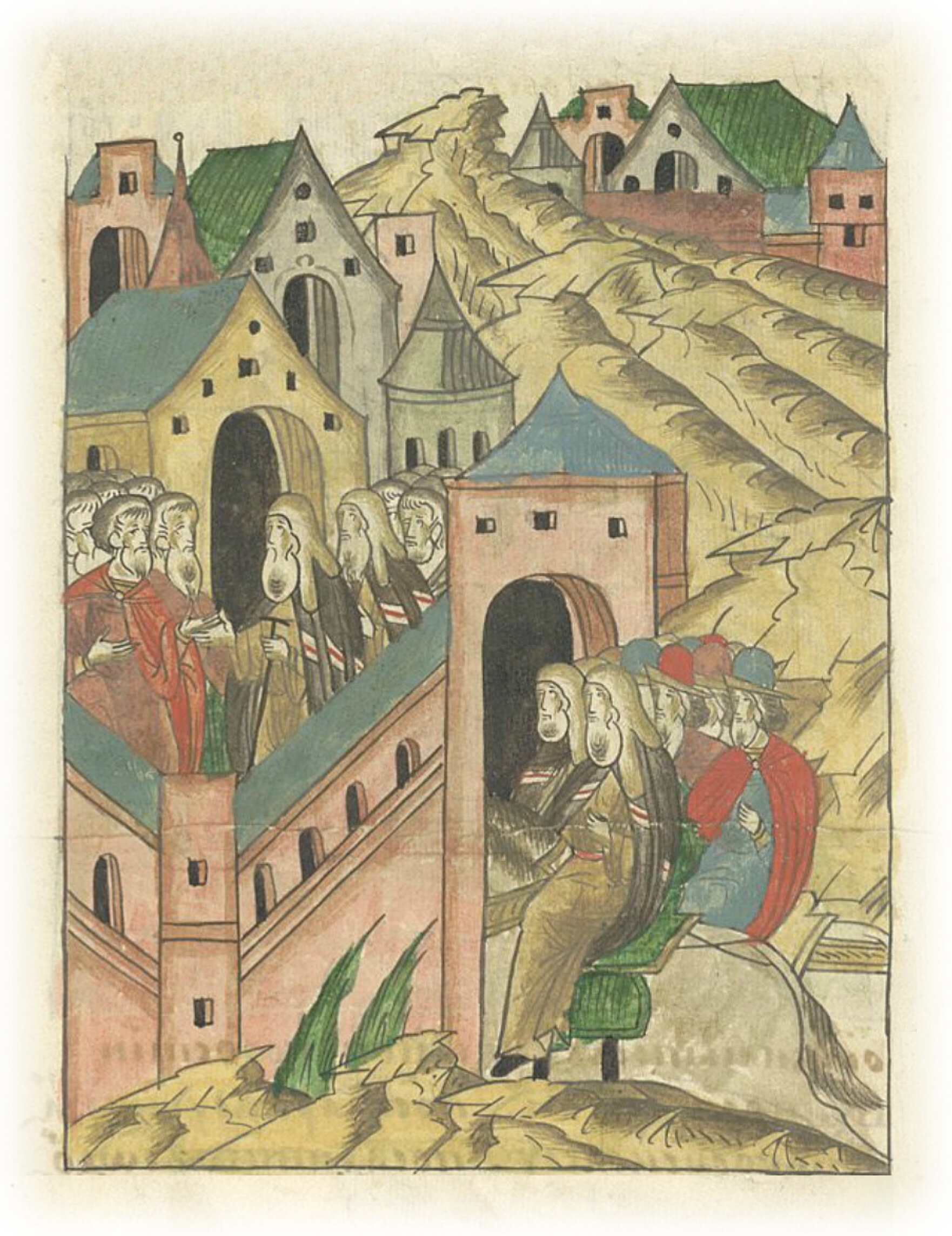 Митрополиты Матфей и Никандр приходят из Царьграда пригласить митрополита Пимена к патриарху Нилу.