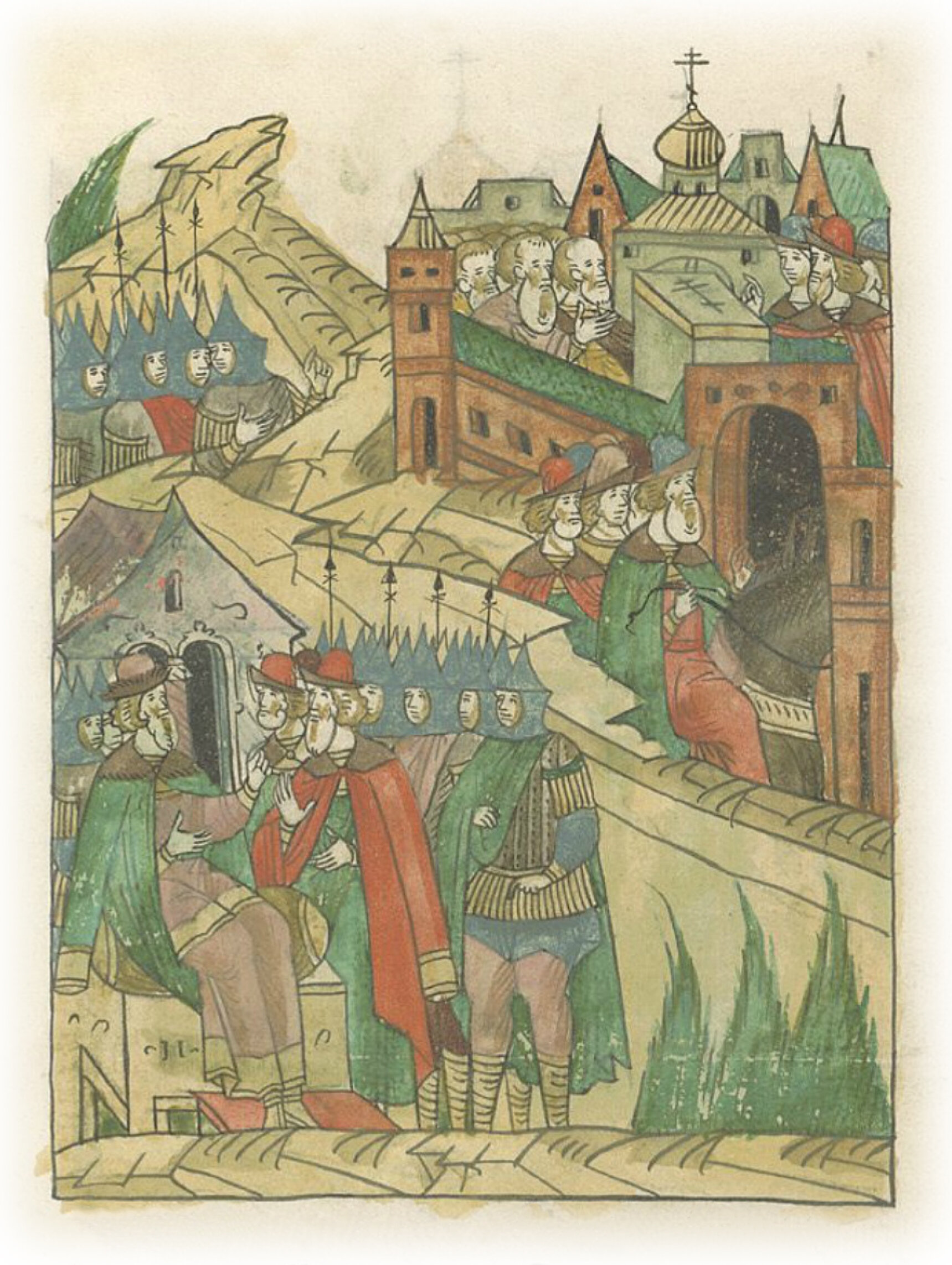 Взятие великим князем Иваном Васильевичем Твери. Великий князь Иван Васильевич посылает в город своих бояр и велит привести присяге горожан.