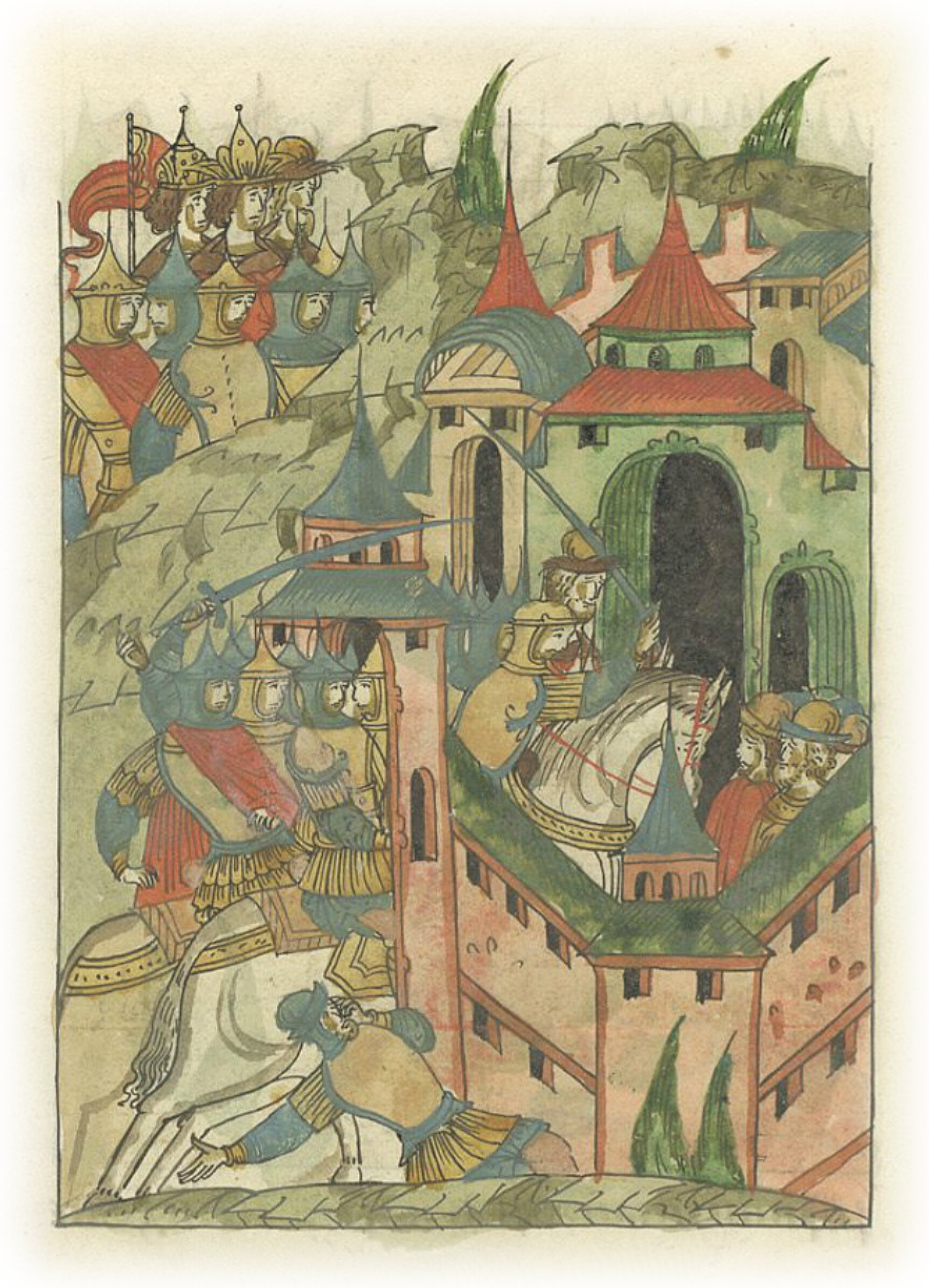 Языки говорят воеводам царя Ивана Васильевича, что магистр окопался большим рвом вокруг города Рындола, бьет из пушек и пищалей и приступает к Рындолу.