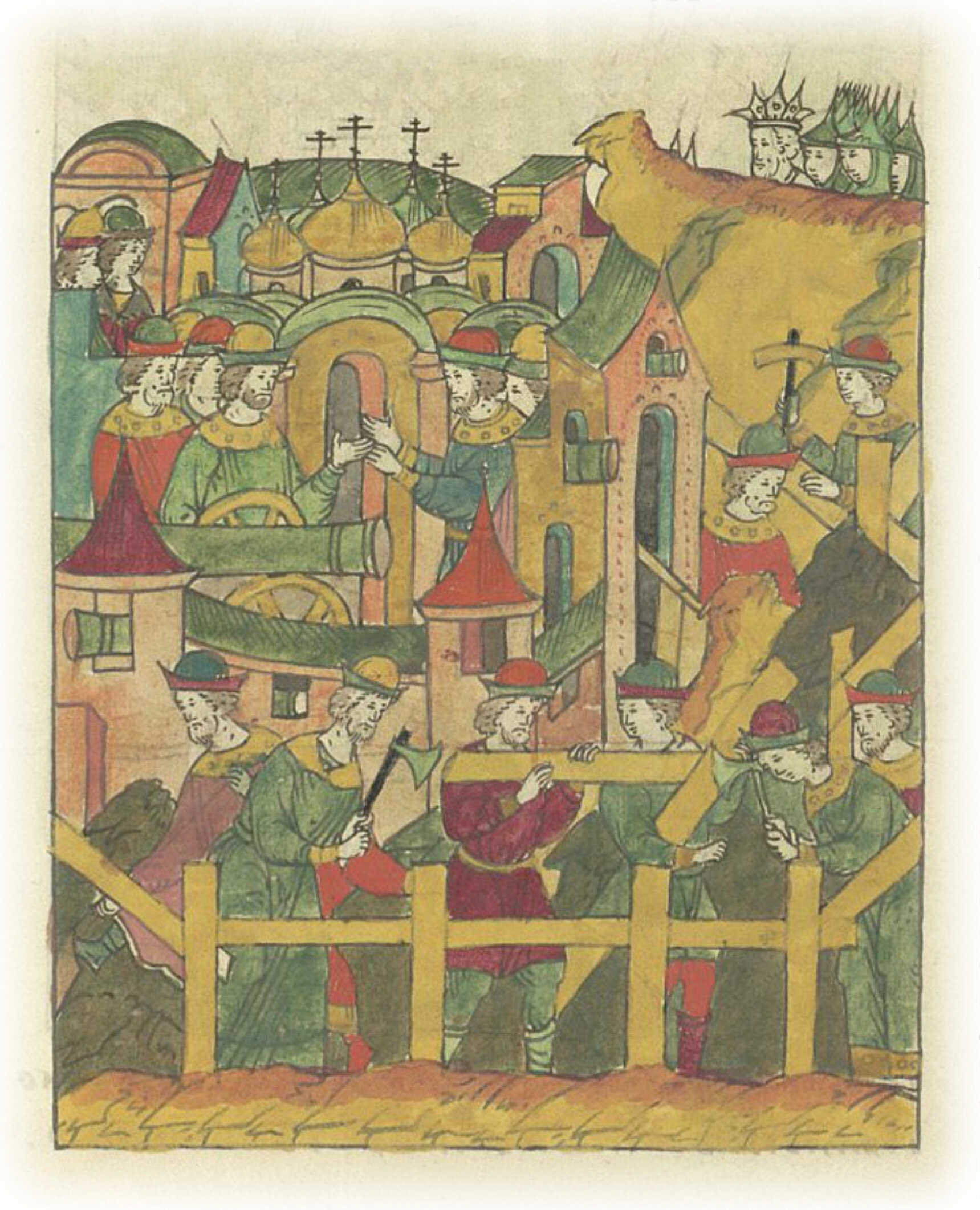 Люди же городские с великим желанием начали все прилежно делать, а между собой обещали за святые церкви и за государя великого князя, и за свои дома крепко стоять и головы свои класть.