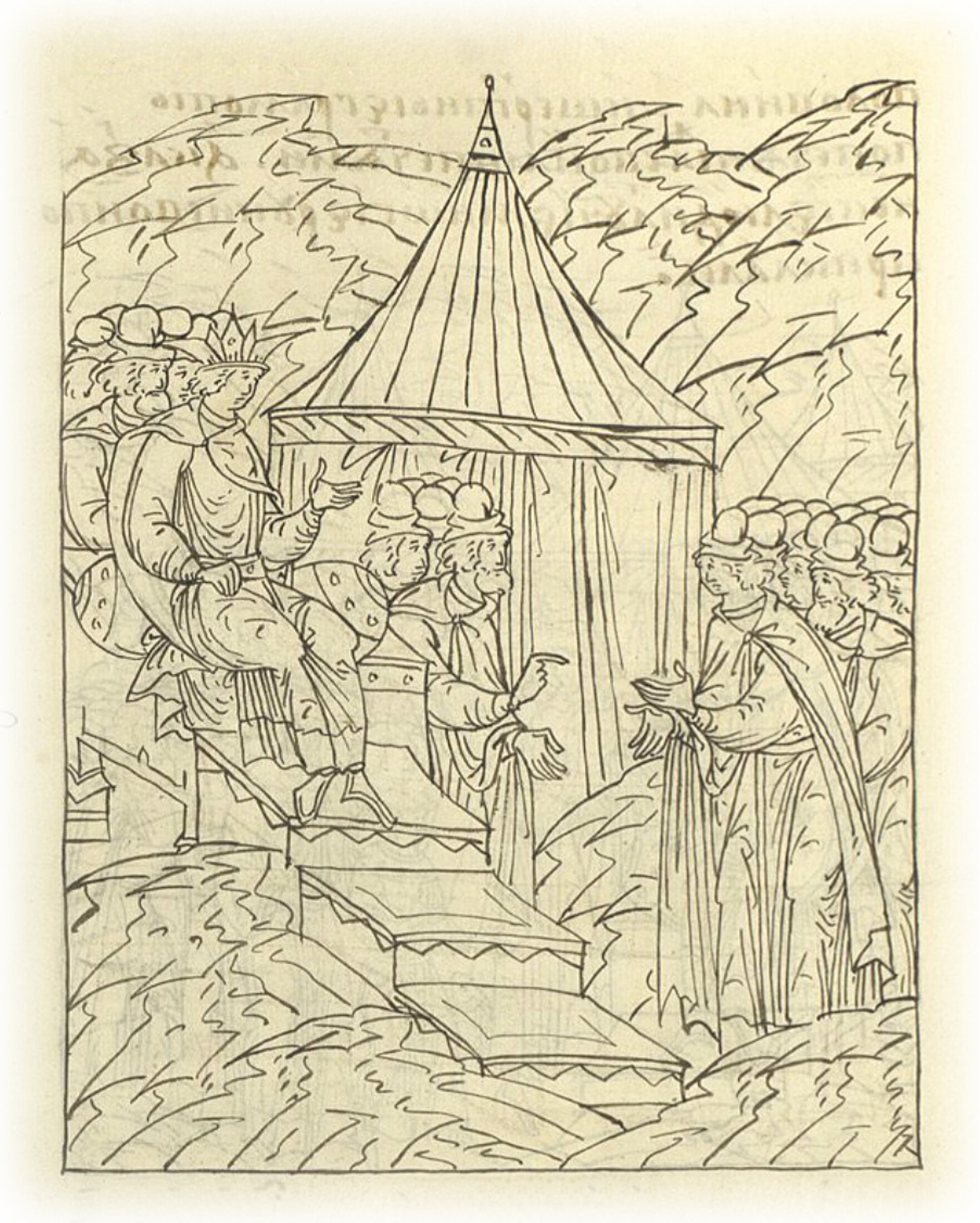 Царь Иван Васильевич отпускает гонца Никиту Сущова в Литву с грамотой к королю.