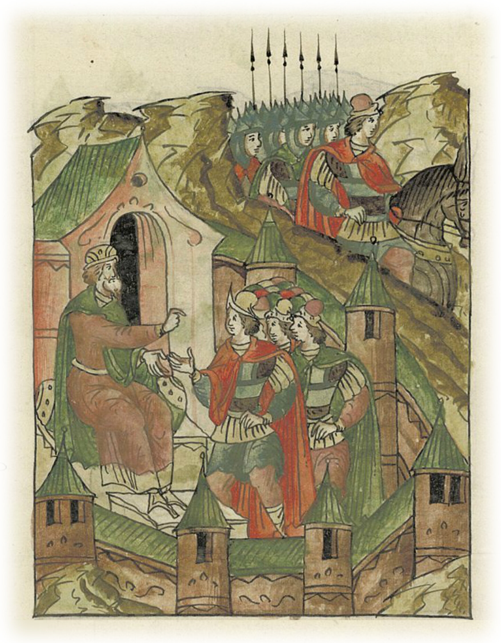 Ругодивские посадники Яким и Захар приезжают в Москву. Воеводы царя Ивана Васильевича Алексей Адашев и Иван Михайлов сообщают им, что государь пожалует их, если сдадут его воеводам помимо Ругодива Вышгород.