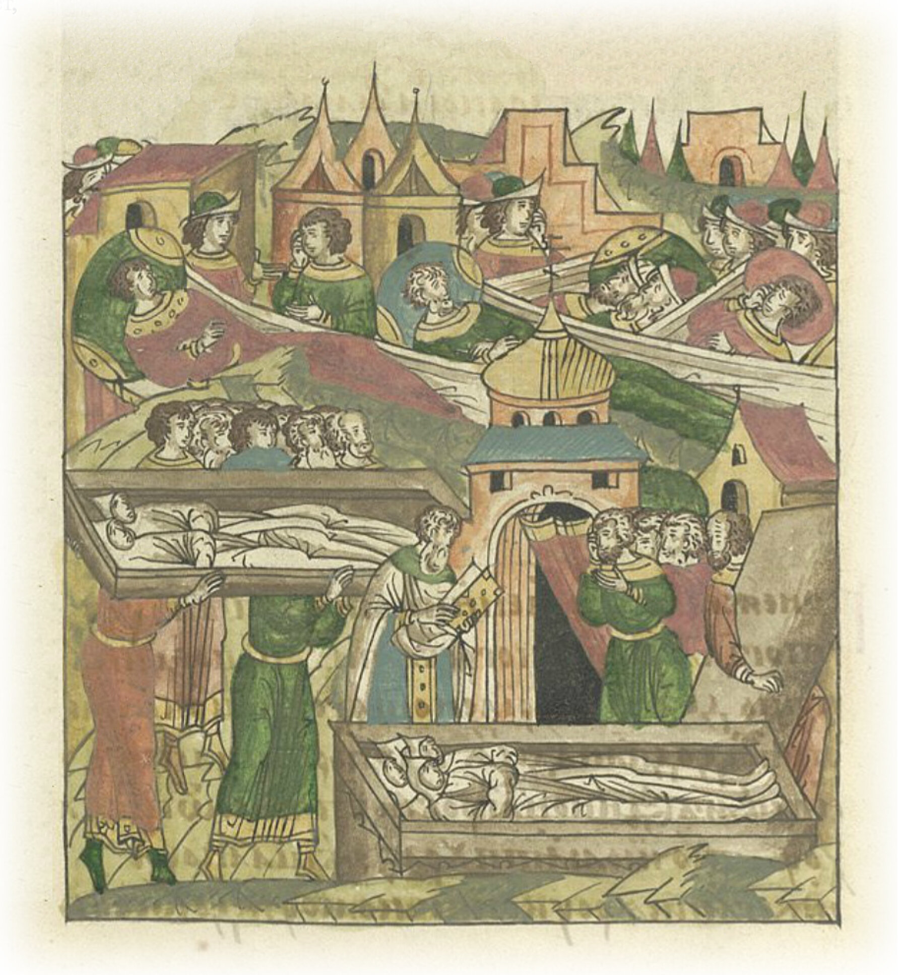 Многие хотели помочь умирающим, но сами вскоре заболев, умирали, и поэтому многие боялись помогать умирающим. Имеющие же в себе страх Божий и память смертную, помня, что никто не может избежать смерти, с верою помогали заболевшим и умирающим, носили их и погребали, тем самым делая все ради духовного спасения своего. Ни сан, ни именитость не помогали избежать смерти, во всех вонзала она свои плотоядные зубы. Люди говорили, что мор тот пришел из Индийской страны, из Солнце-града.