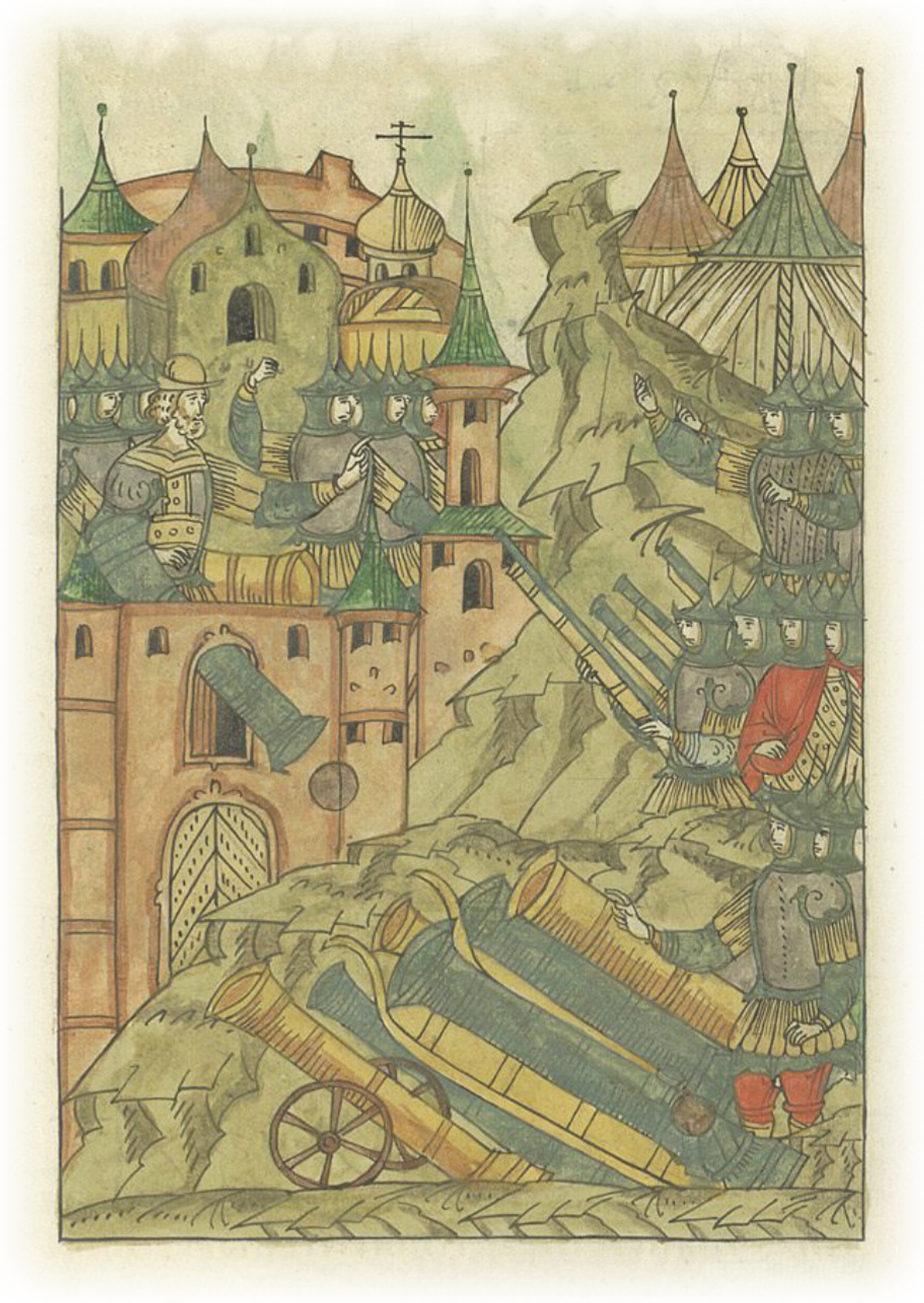 Языки говорят воеводам царя Ивана Васильевича, что магистр окопался большим рвом вокруг города Рындола, бьет из пушек и пищалей и приступает к Рындолу.