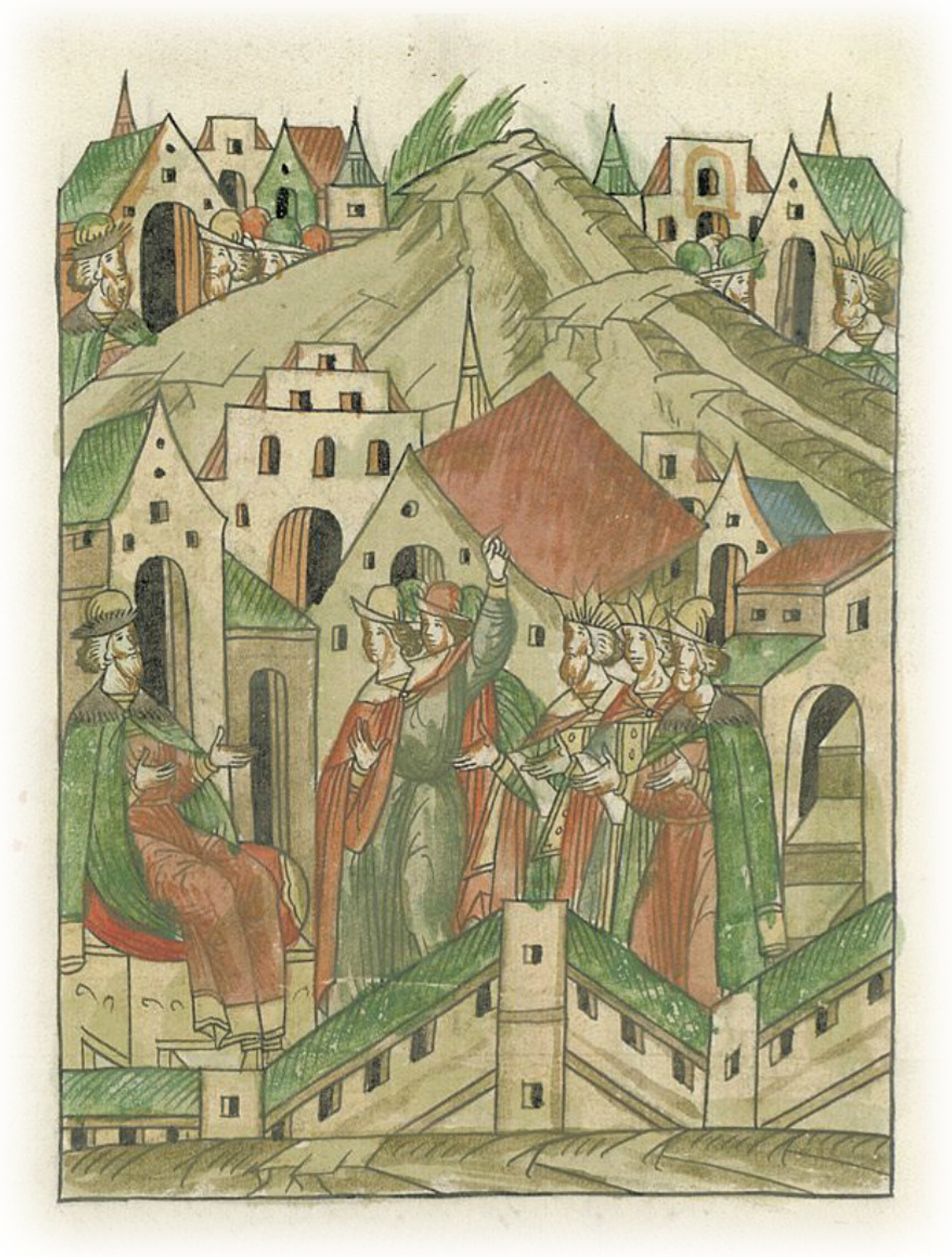 Ругодивские посадники Яким и Захар приезжают в Москву. Воеводы царя Ивана Васильевича Алексей Адашев и Иван Михайлов сообщают им, что государь пожалует их, если сдадут его воеводам помимо Ругодива Вышгород.