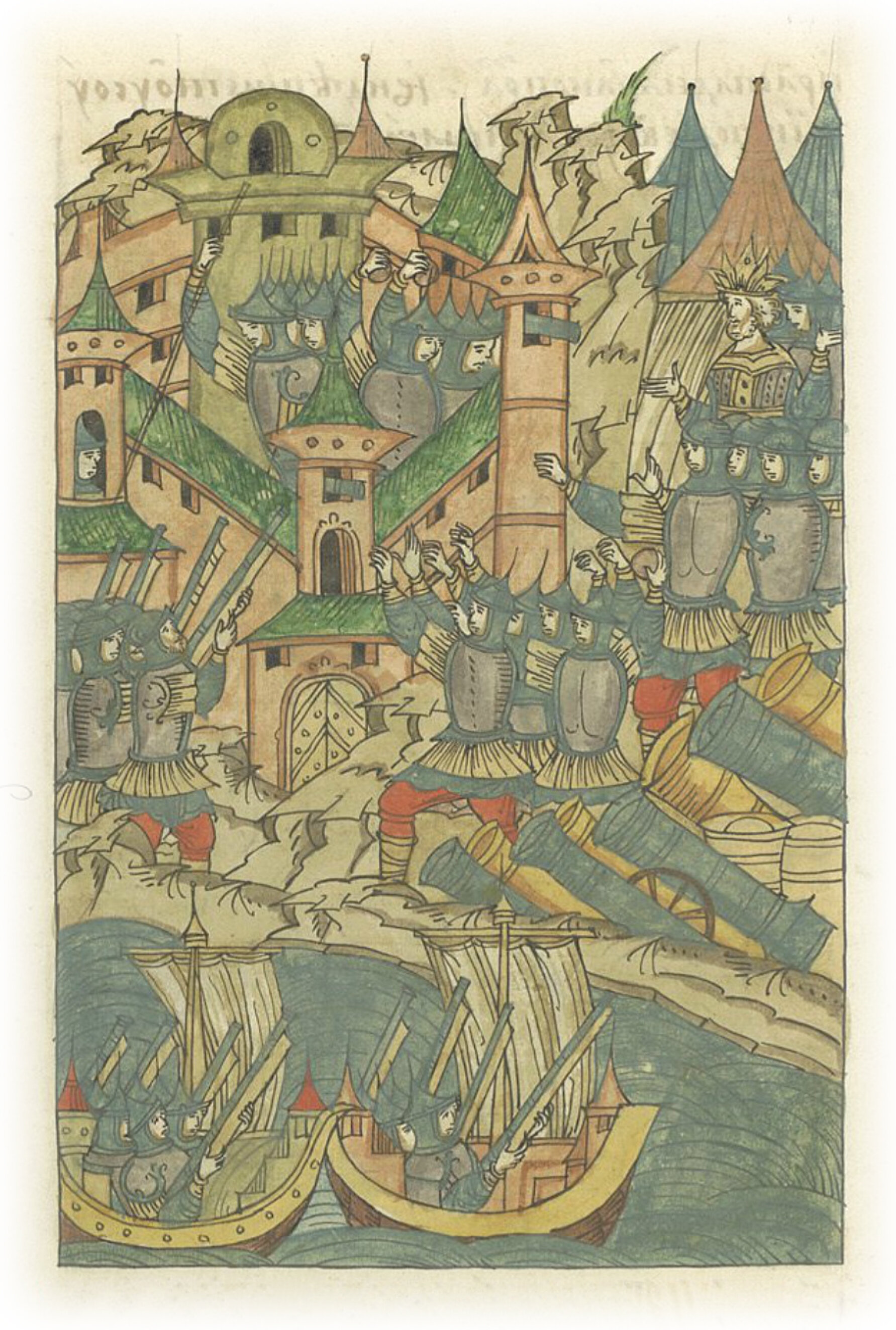 Увидев это, безверный Магмед очень разъярился и закричал страшным голосом: «Ягма, ягма!», то есть «На разграбление города!» Тотчас также воскликнуло воинство все и приступило к городу всеми силами по земле и по морю со всяким своим умением к взятию города.