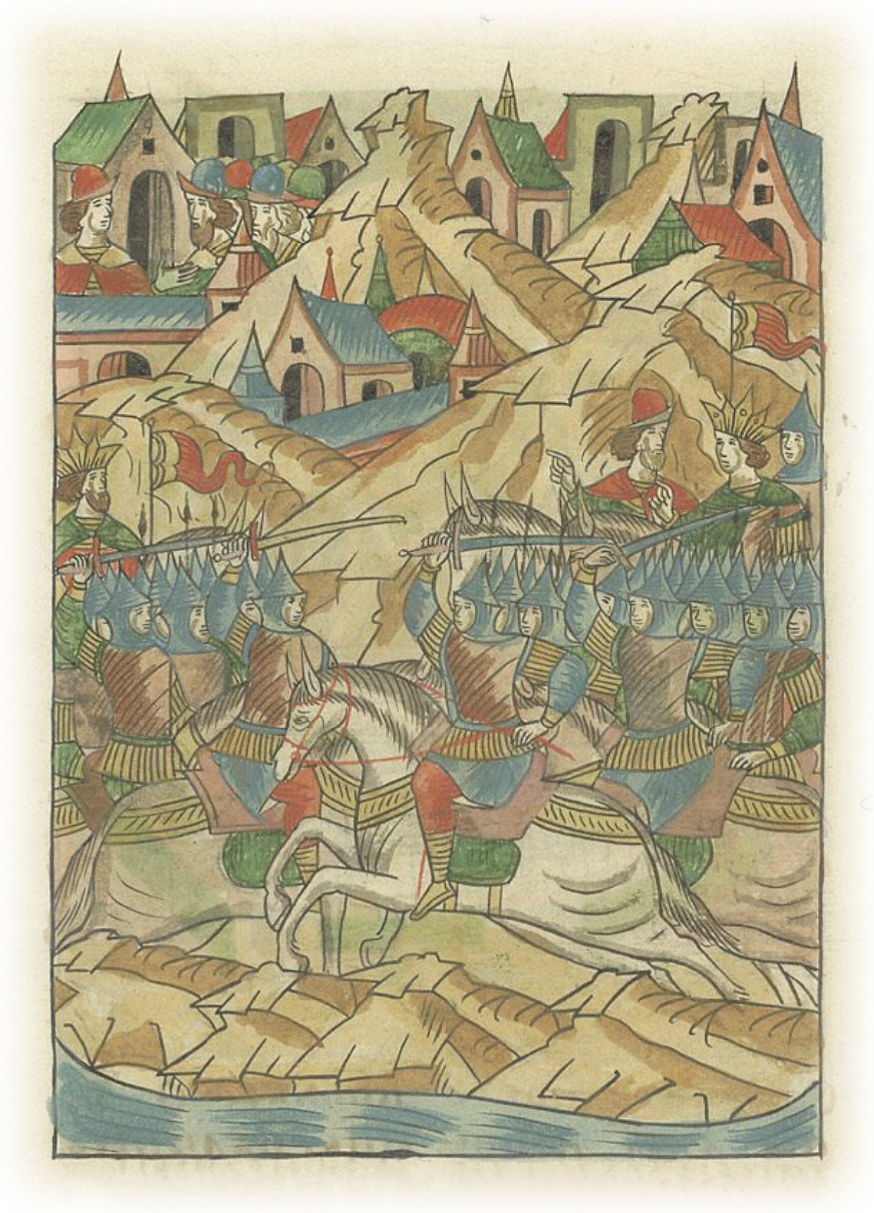 Языки говорят воеводам царя Ивана Васильевича, что магистр окопался большим рвом вокруг города Рындола, бьет из пушек и пищалей и приступает к Рындолу.