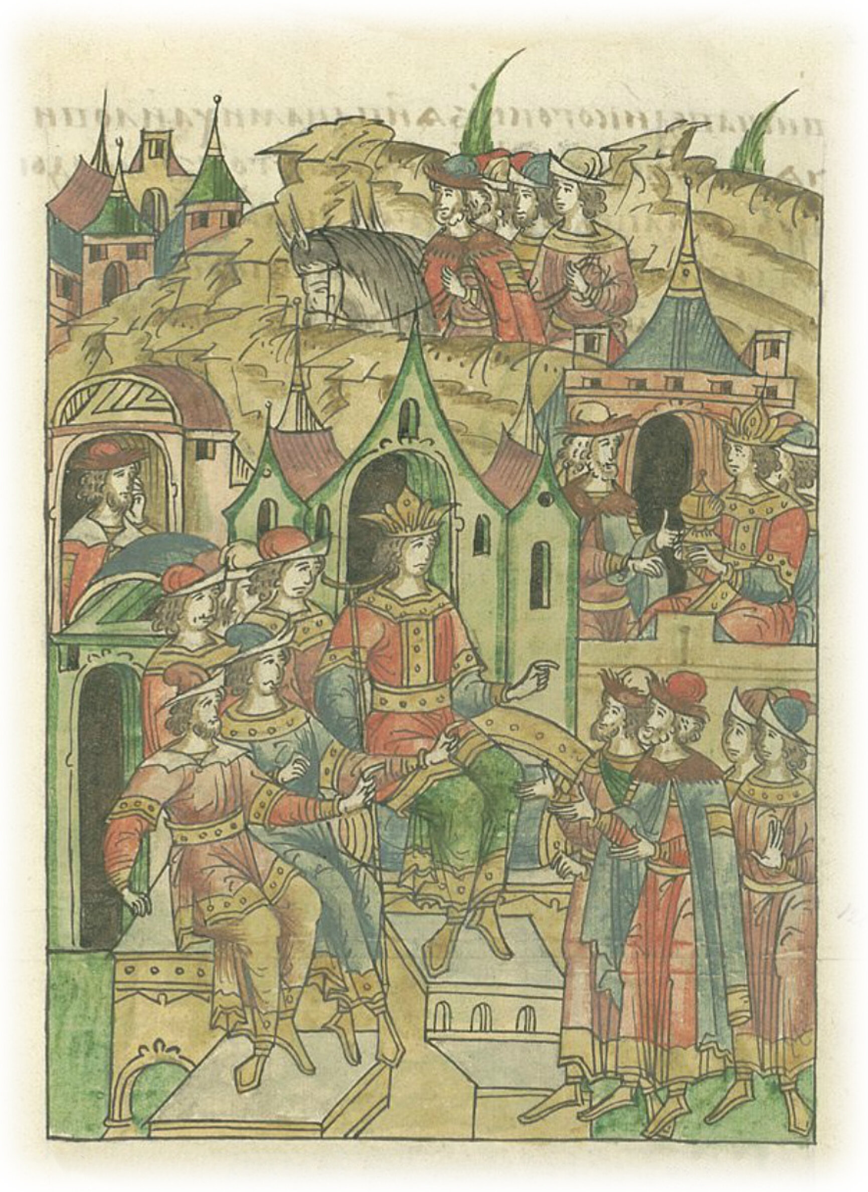Великий князь Иван Михайлович Тверской судится в Орде с князем Юрием Всеволодовичем Тверским перед царем Булат-Салтаном о великом Тверском княжении. Царь и все ордынские князья поддерживают великого князя Ивана Михайловича Тверского.