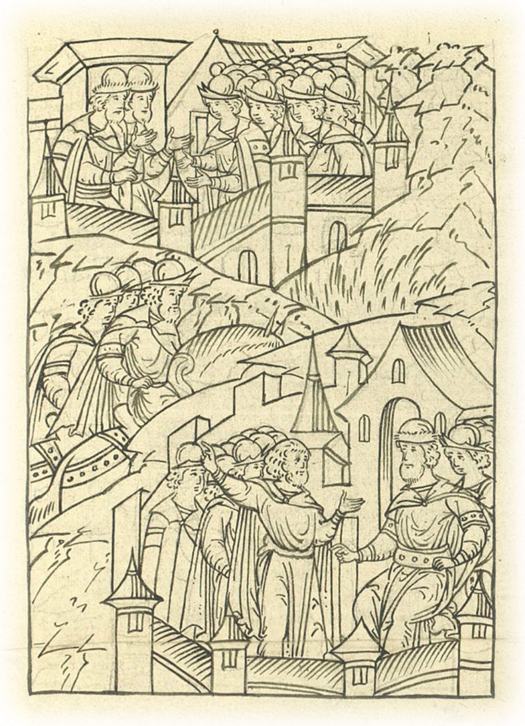 Ругодивские посадники Яким и Захар приезжают в Москву. Воеводы царя Ивана Васильевича Алексей Адашев и Иван Михайлов сообщают им, что государь пожалует их, если сдадут его воеводам помимо Ругодива Вышгород.