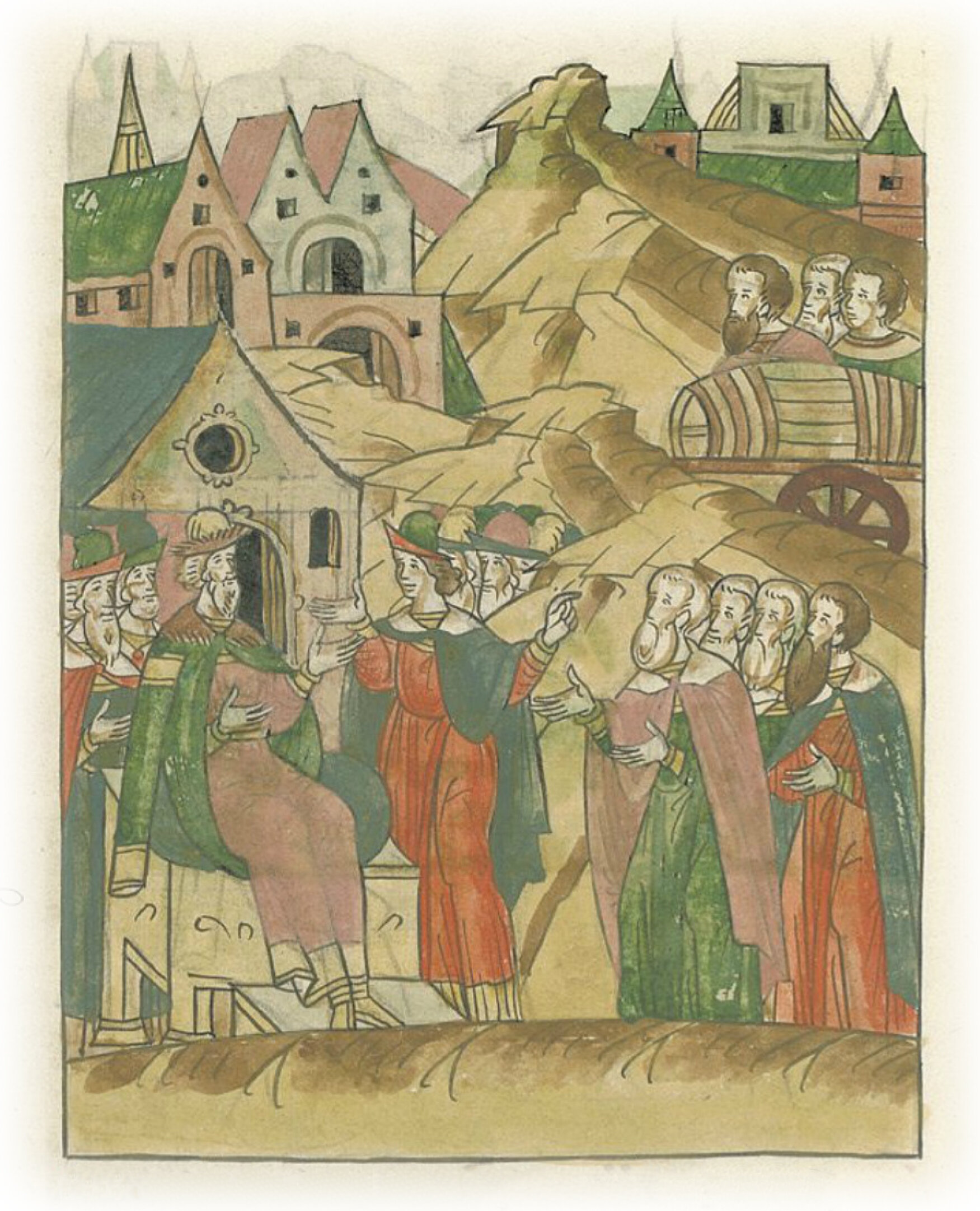 Старосты новгородских улиц приходят с подарками к великому князю Ивану Васильевичу.