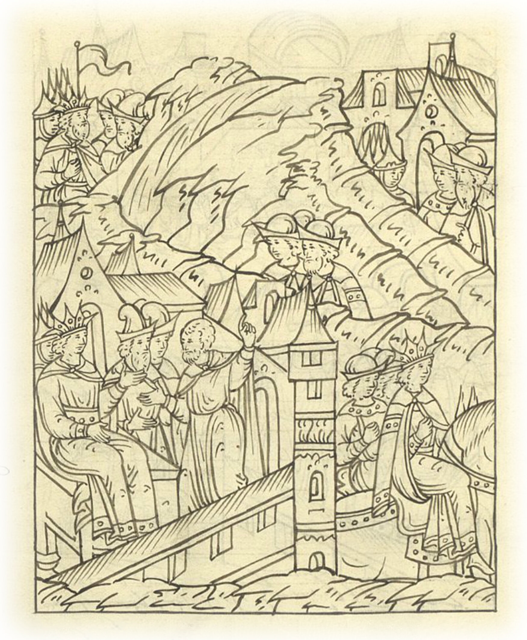 Языки говорят воеводам царя Ивана Васильевича, что магистр окопался большим рвом вокруг города Рындола, бьет из пушек и пищалей и приступает к Рындолу.