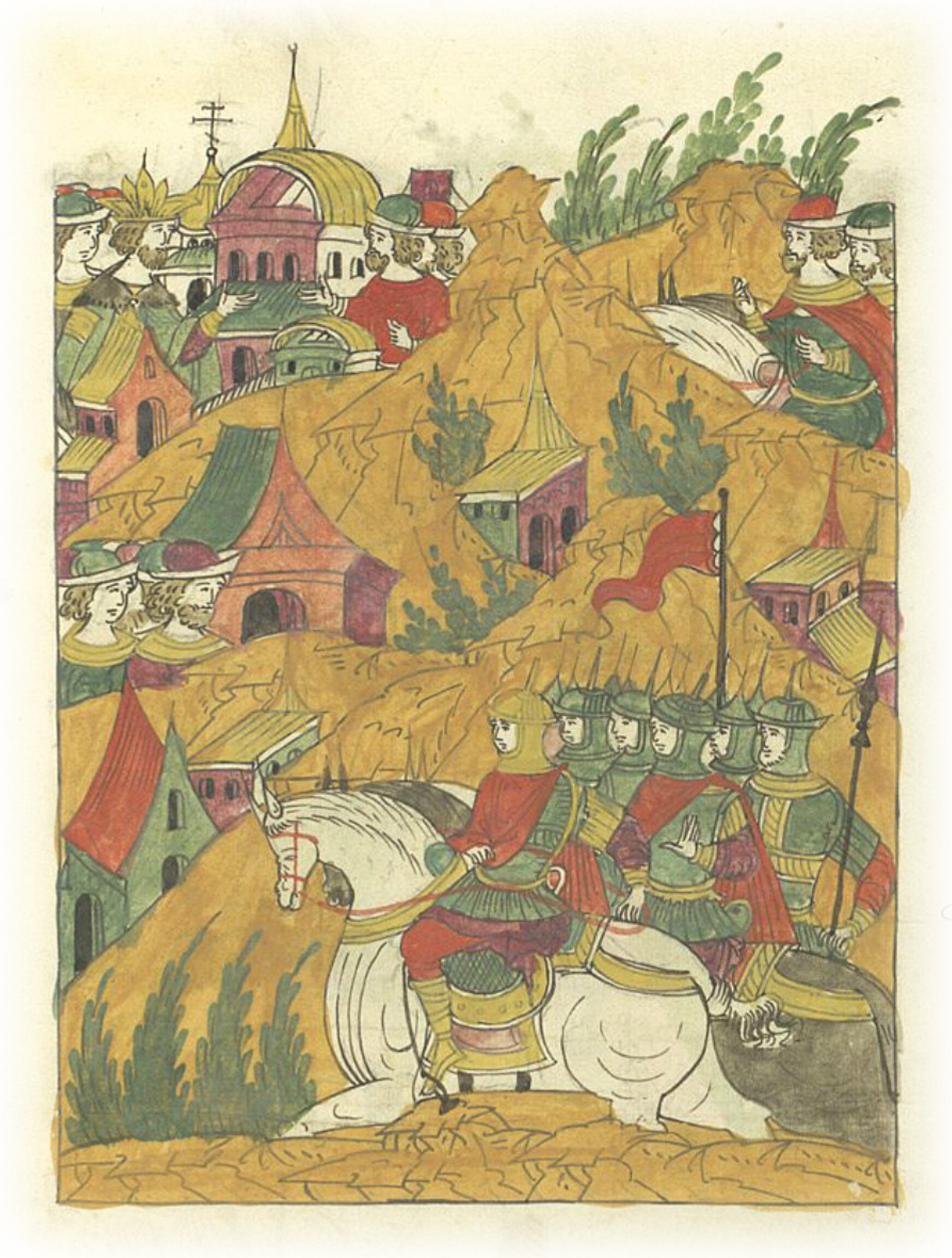 В том же месяце приехали к государю в Можайск два крымских татарина, а сказали, что пришел Дивей-мурза ногайский из Крыма, да с ним мурзы Ширинские, и с ними три тысячи человек, а пришли войной на окраину.