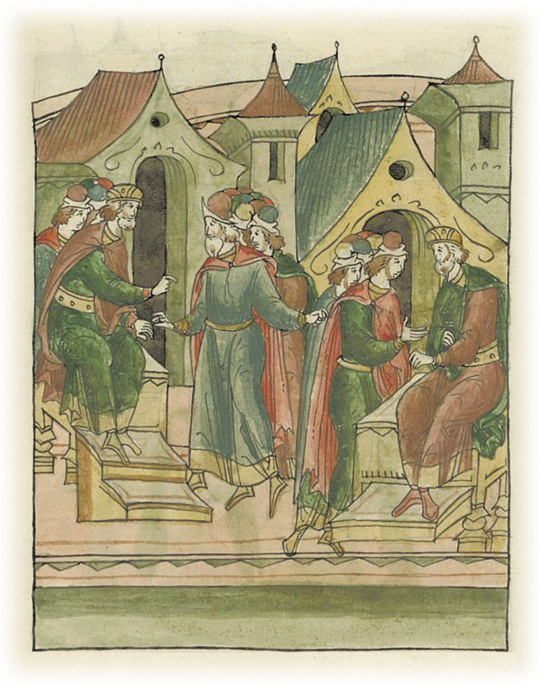 Ругодивские посадники Яким и Захар приезжают в Москву. Воеводы царя Ивана Васильевича Алексей Адашев и Иван Михайлов сообщают им, что государь пожалует их, если сдадут его воеводам помимо Ругодива Вышгород.