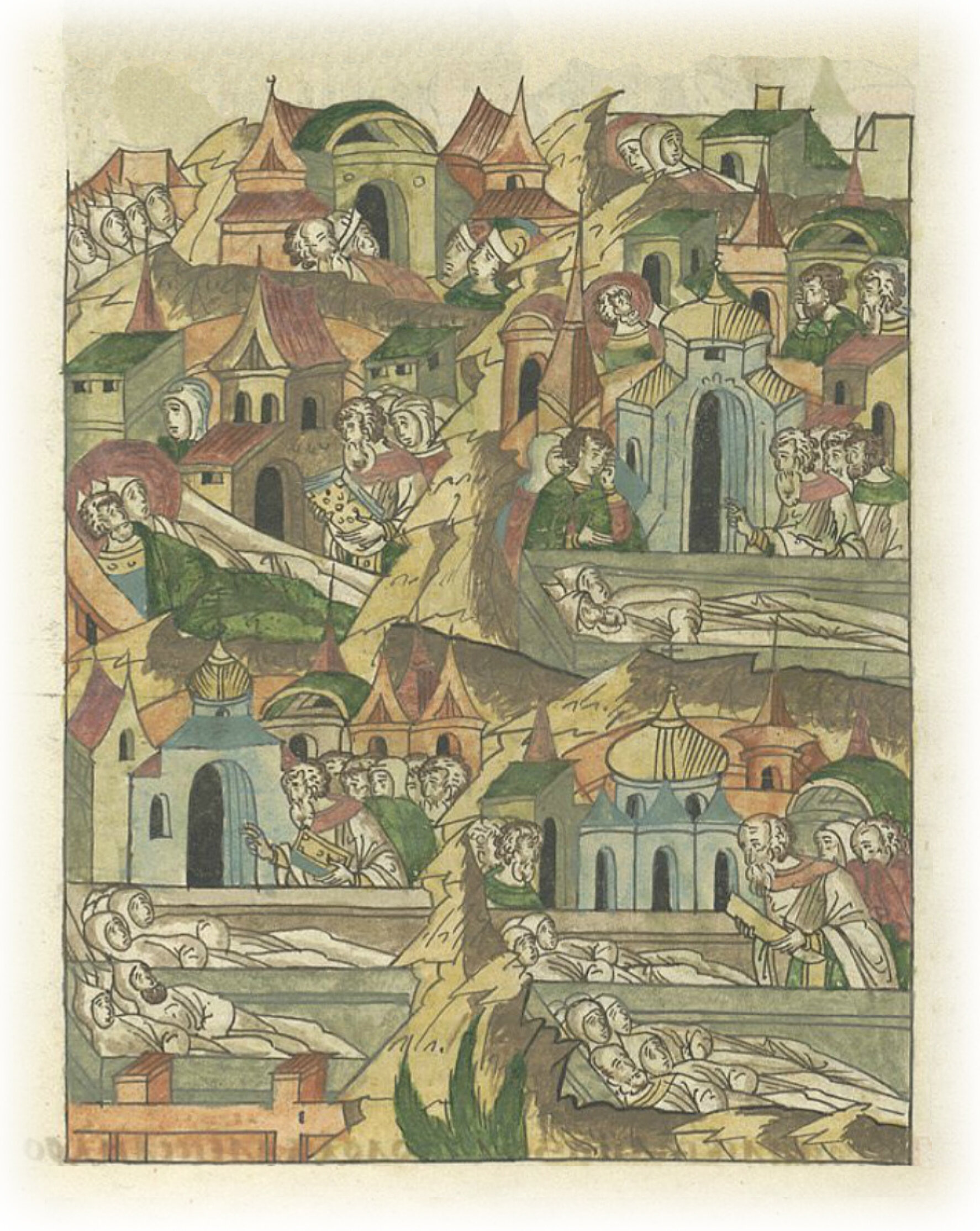 В том же году был сильный мор в Смоленске, в Киеве, в Чернигове, в Суздале, и по всей земле Русской смерть лютая, внезапная и быстрая. И напал страх и трепет великий на всех людей. В Глухове же тогда ни одного человека не осталось, все умерли, так же было и на Белозерье.
