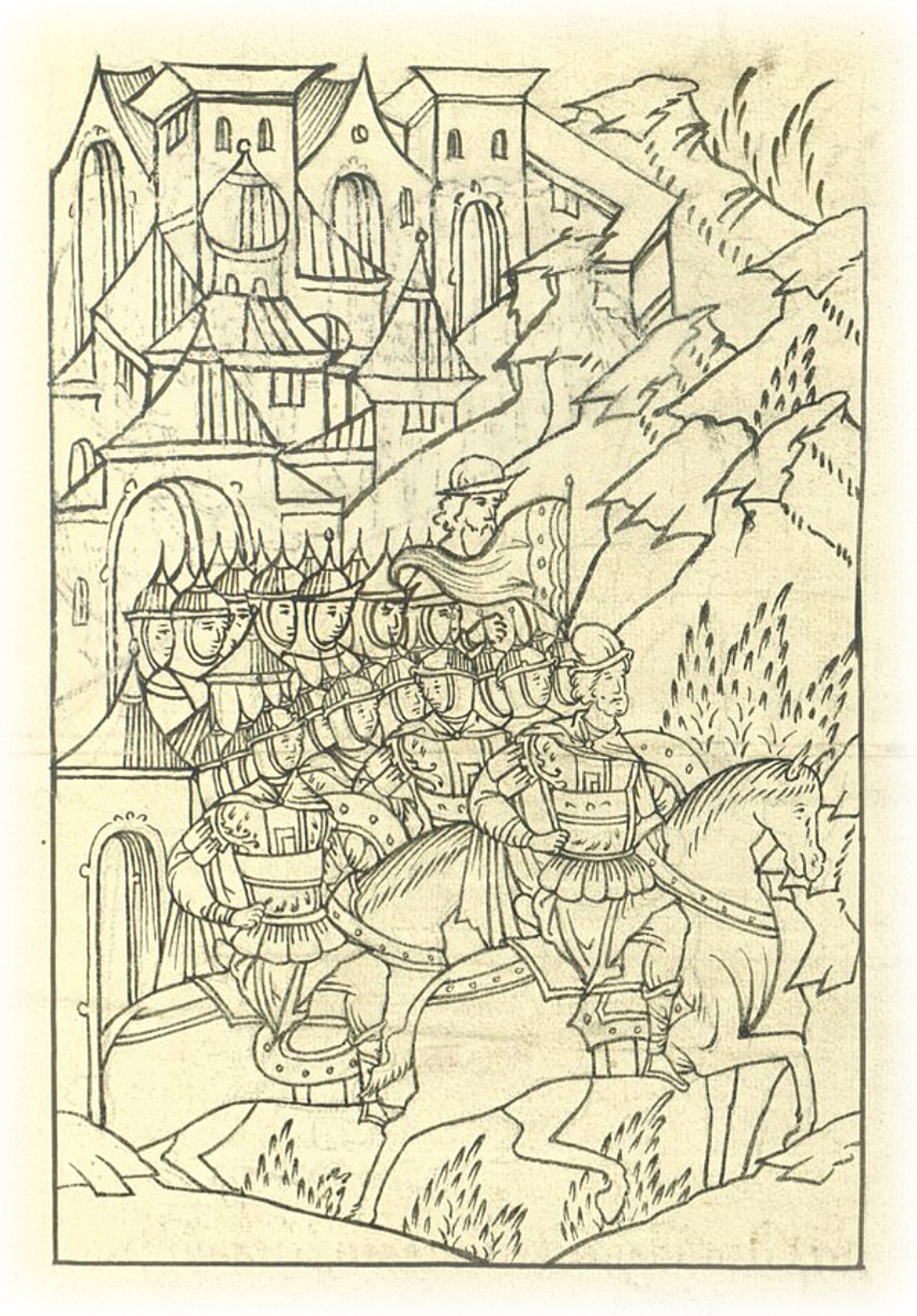 Языки говорят воеводам царя Ивана Васильевича, что магистр окопался большим рвом вокруг города Рындола, бьет из пушек и пищалей и приступает к Рындолу.
