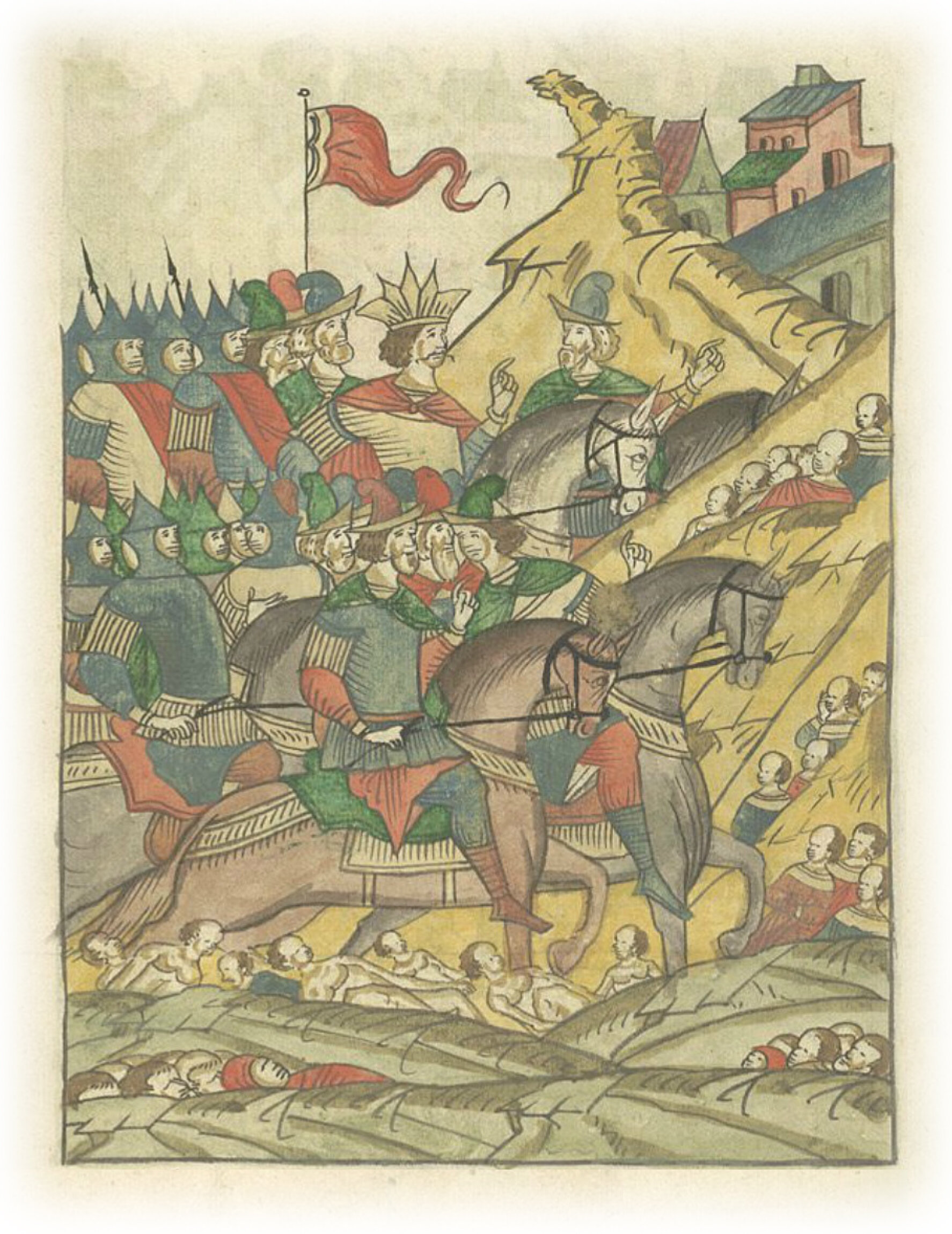 Видя множество оставшихся плачущих отроков, не смилостивился над ними безбожный Темир, но повелел затоптать их конями, говоря: «Освобождаю их от злобы и тяжестей мира сего». О, немилосердный и бесчеловечный, окаянный, треклятый Темир, такое сотворивший!
