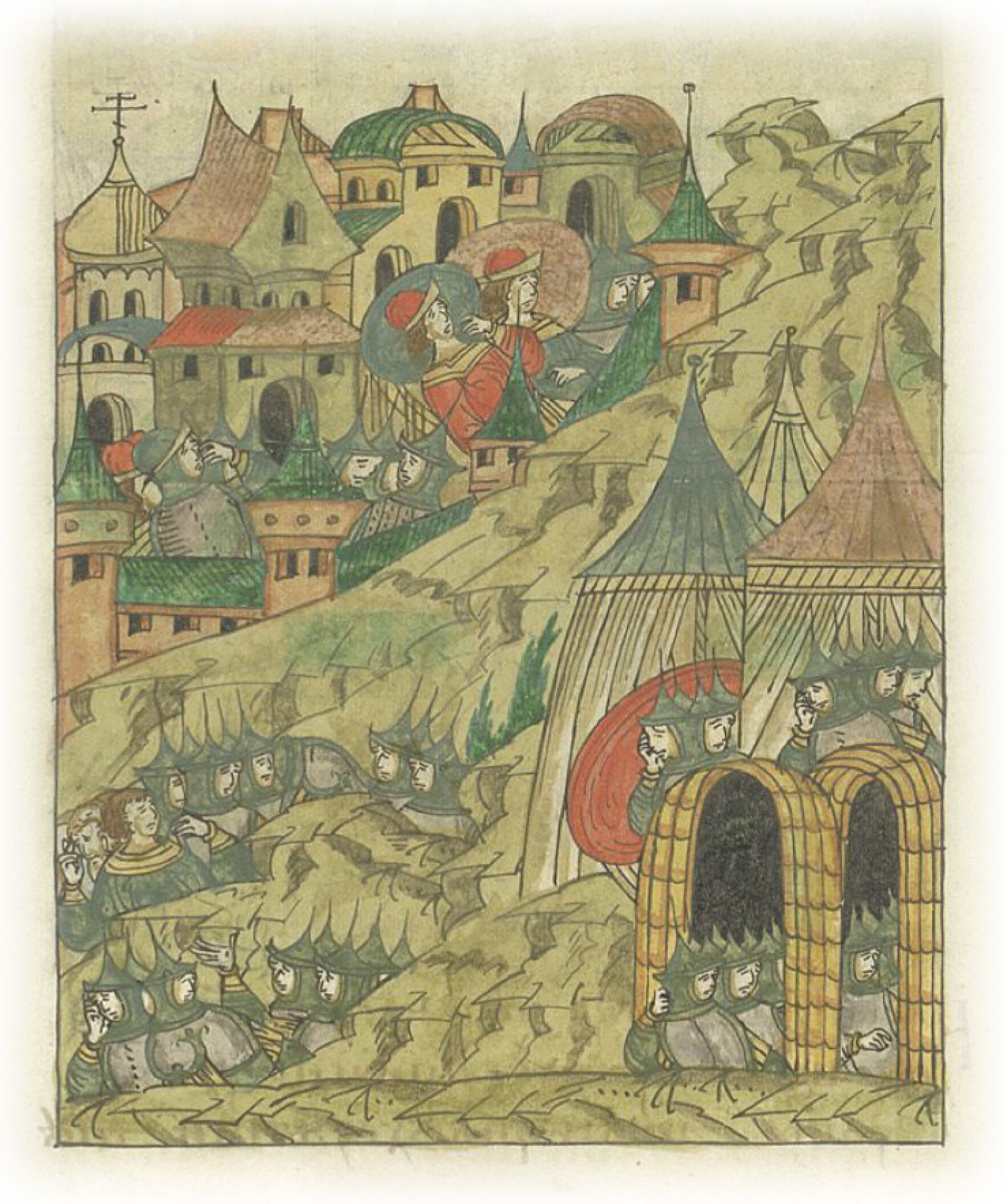 Языки говорят воеводам царя Ивана Васильевича, что магистр окопался большим рвом вокруг города Рындола, бьет из пушек и пищалей и приступает к Рындолу.