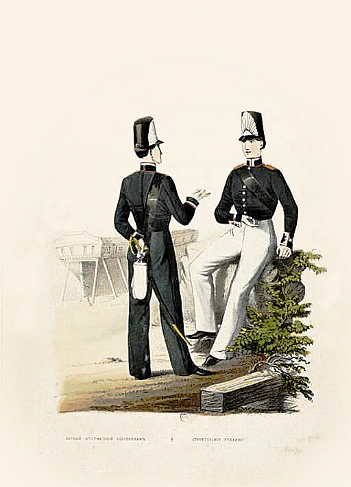 Переплетенная подборка литографий, изображающих учащихся российских учебных заведений из собрания Национальной библиотеки Франции. Отдел эстампов и фотографии. 4-OB-238