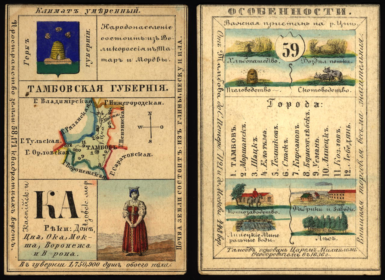 Тамбовская губерния - принадлежит к восточной половине центральной земледельческой области Европейской России. Протяжение губернии с С на Ю от 100 до 400 верст, с В на З — от 85 до 270 верст. Площадь губернии 58511 кв. вер. (66588 кв. км). Разделена губерния на 12 уездов