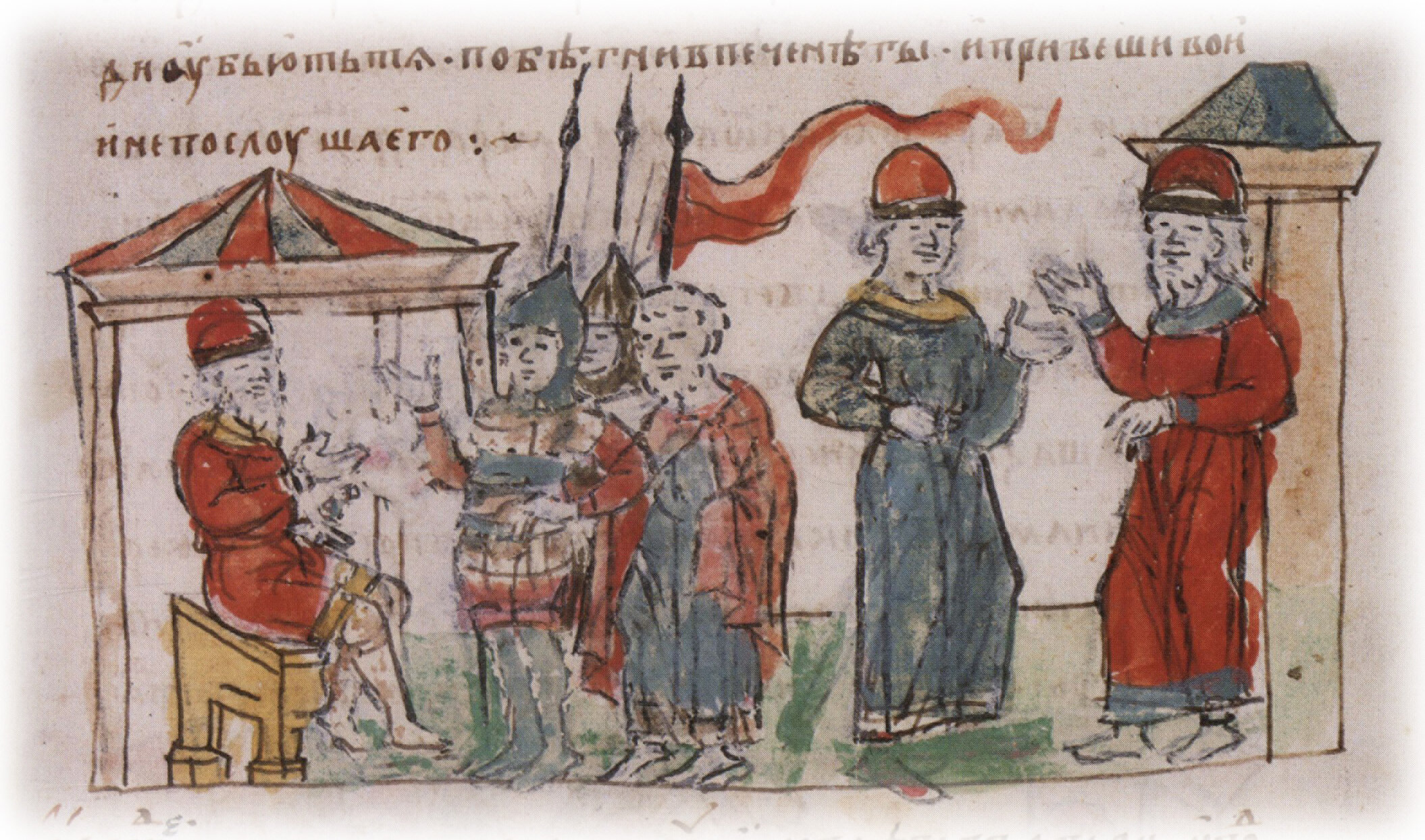 Беседа Владимира Святославича с дружиной в отчем теремном дворе; предупреждение Ярополка Святославича воеводой Варяжком о готовящемся на него покушении. (?)
