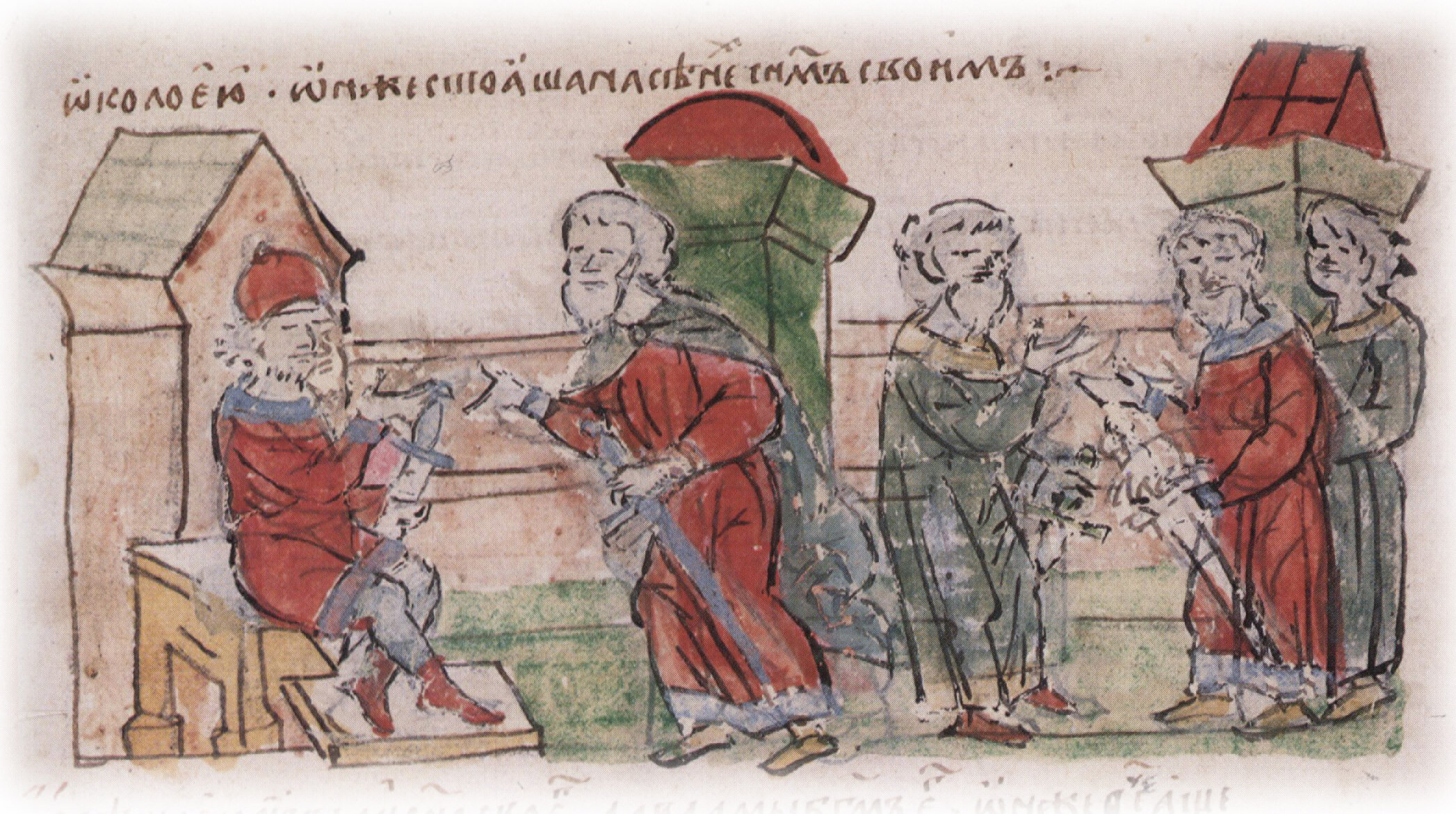 Вручение князем мечнику грамоты на жертвоприношение; отказ варяга христианина выдать сына для принесения в жертву