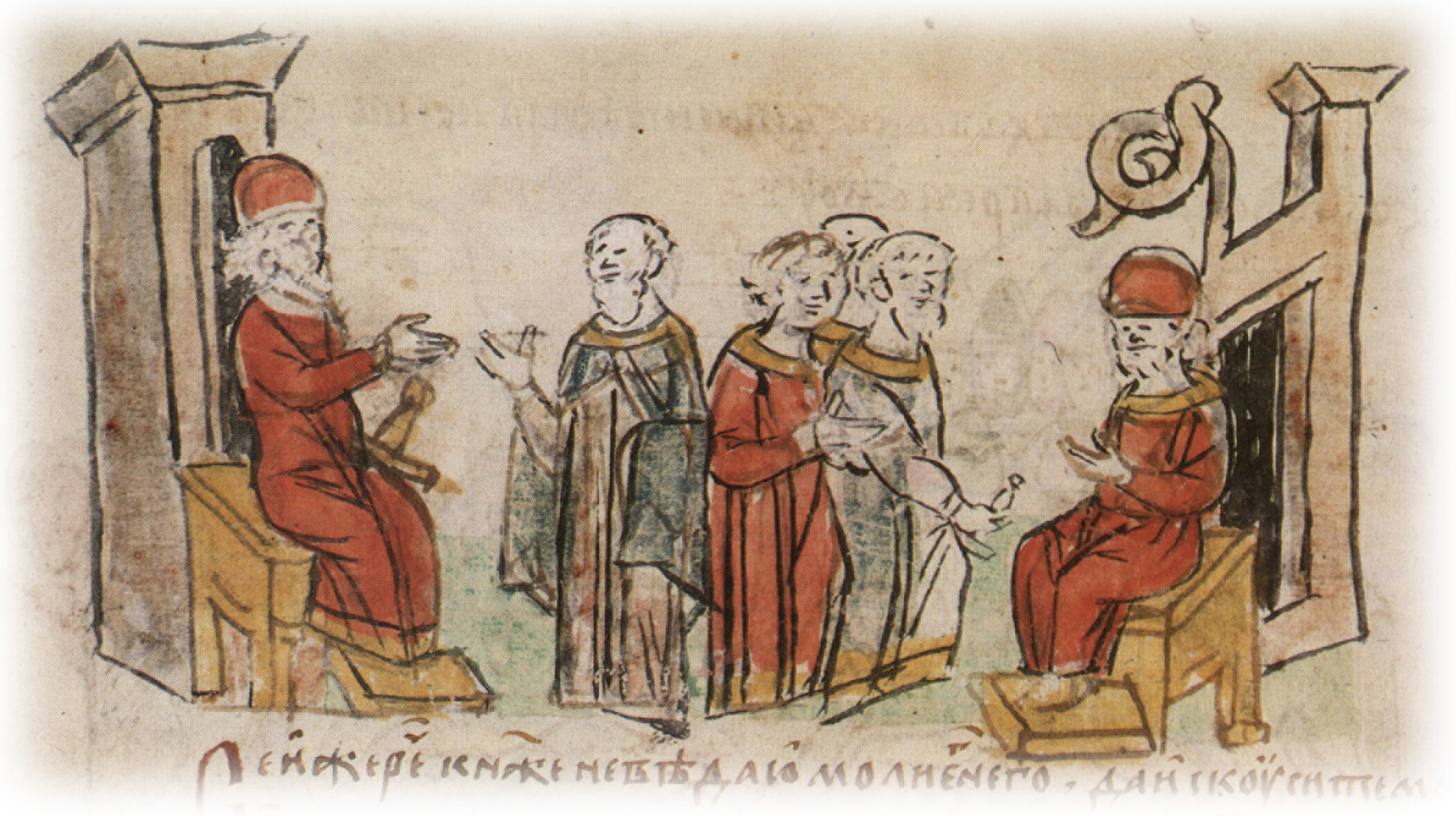 "...и прим іс стръ муж ко князю и рече ему: «Княже! Есть у мене един сын меньший дома, а со четырми есми вышел. От детества его несть кто им ударил»... Князь же, слышав, рад бысть и посла по него, и приведошай ко князю, и князь поведа ему вся".