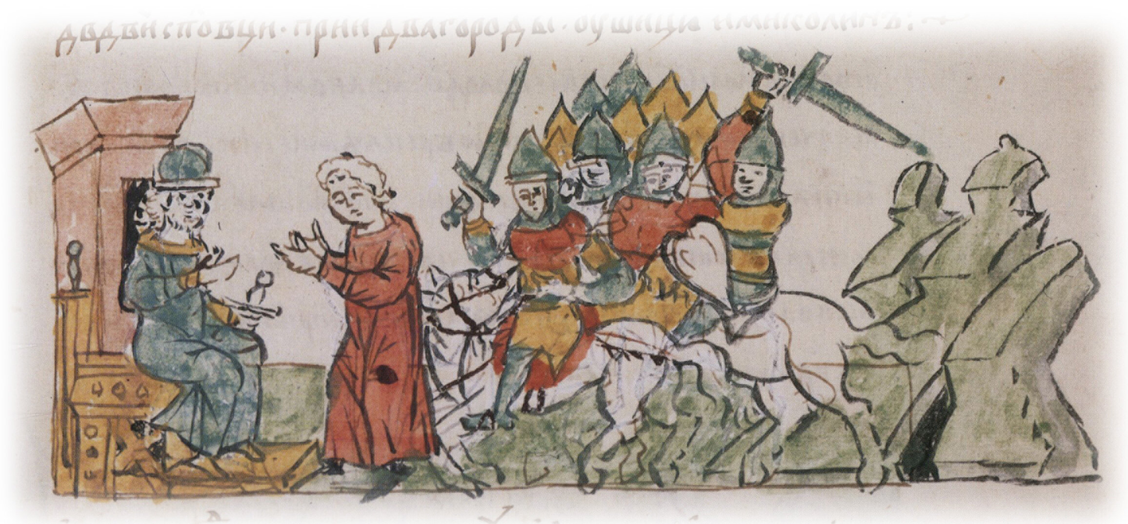 "Ту же и прииде к нему Изяслав Давыдович с половци."