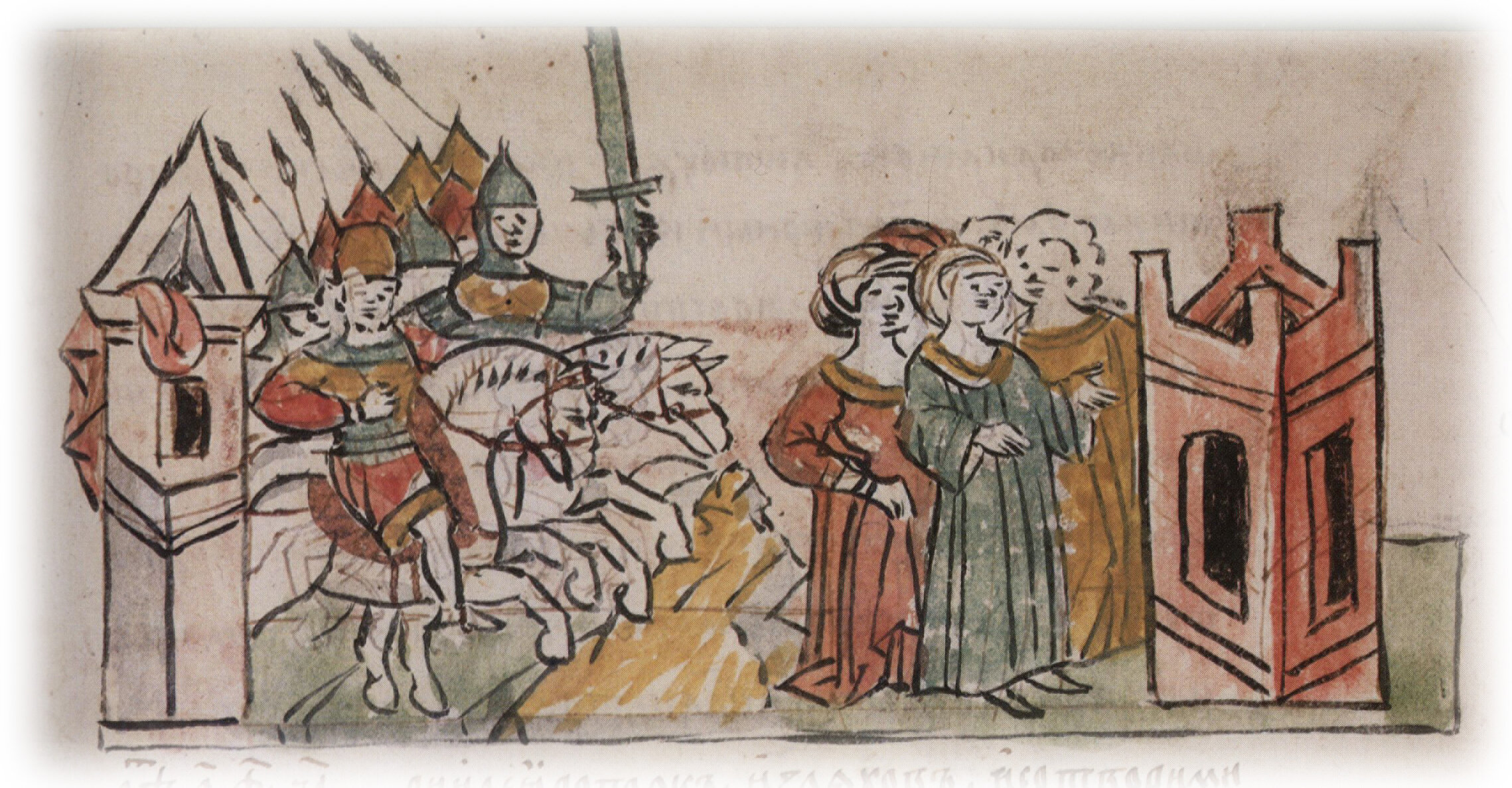 Сражение черниговского пешего ополчения с дружиной Андрея Юрьевича Владимирского и половцами под стенами города.