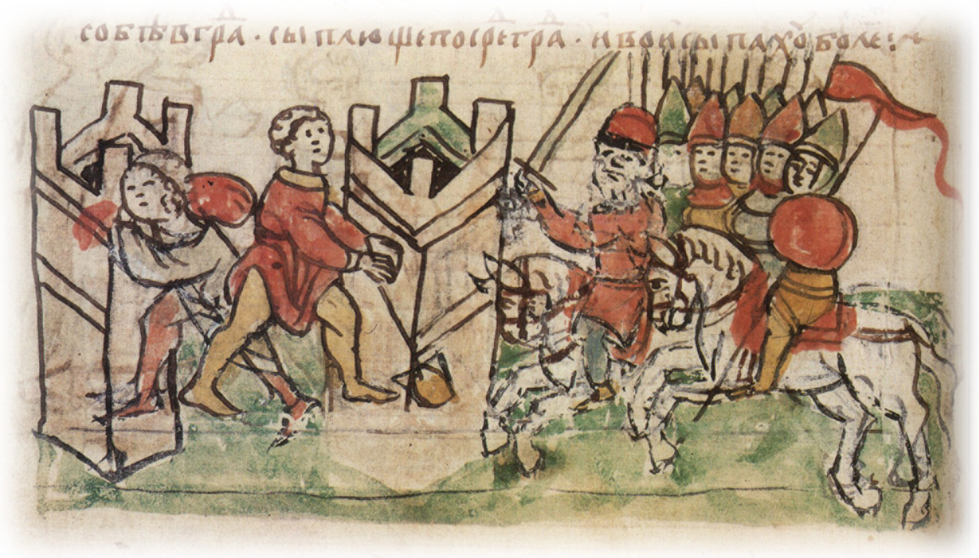 Сражение черниговского пешего ополчения с дружиной Андрея Юрьевича Владимирского и половцами под стенами города.