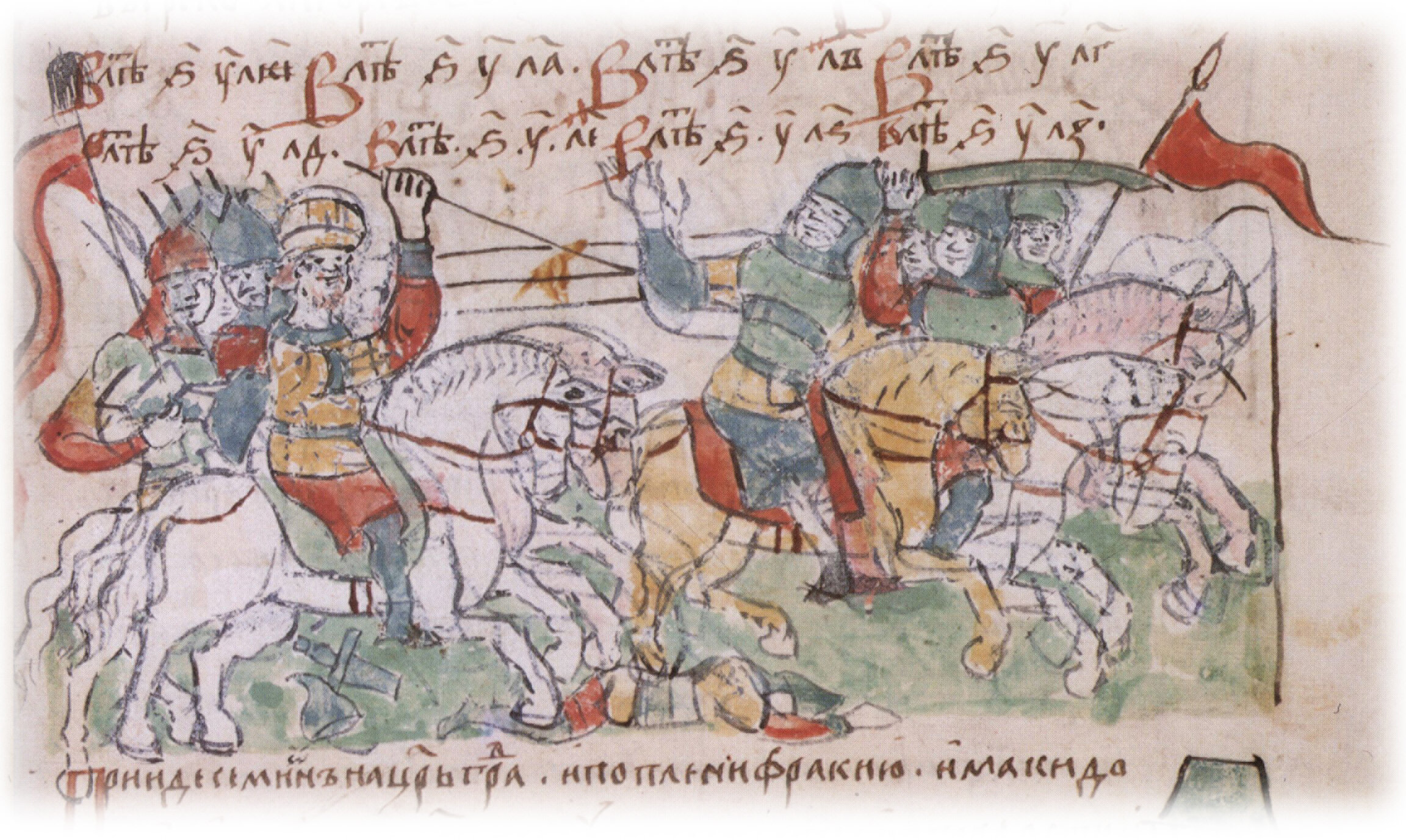 "...а болгаре со грекы ступишася, и пересечени быша грекы. Семион же приа град Ондрень..." "...а Игоре воеваше на печенеги".