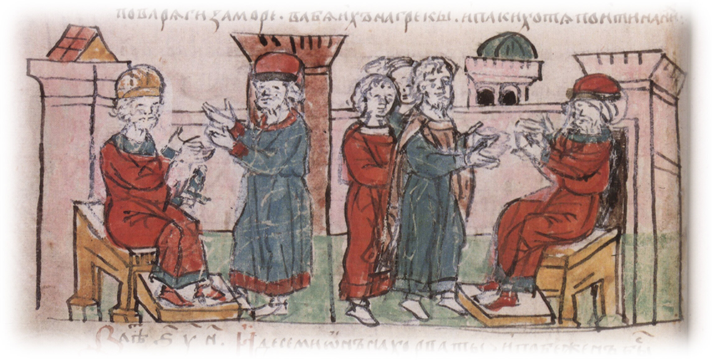 Рассказы участников похода на Царь-град о "небесном огне", которым греки сжигали русские корабли; повеление Игоря о сборе иноземных дружин для участия в походе на греков.