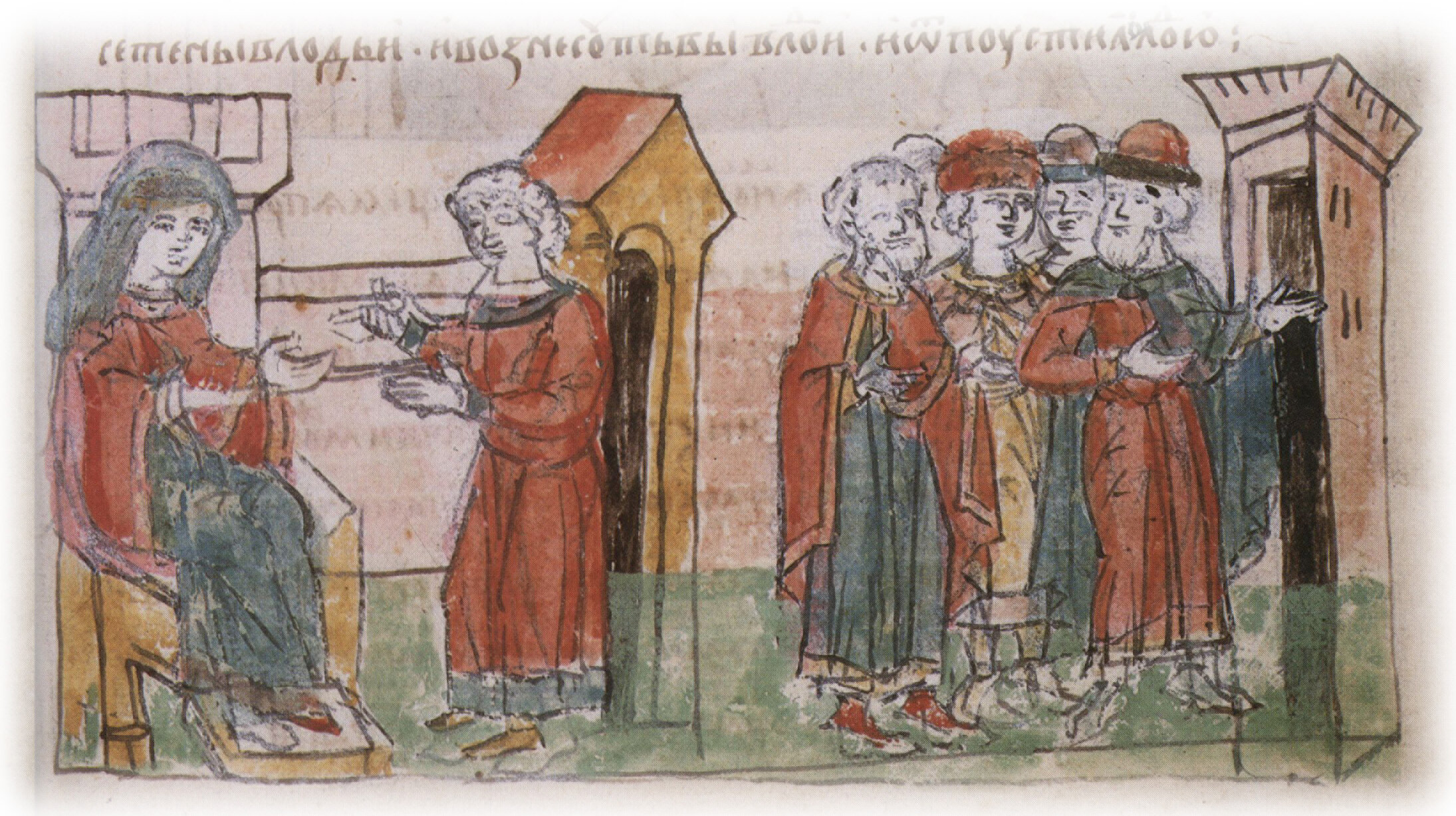 Уход древлянских послов после беседы с Ольгой; повеление Ольги о расправе с послами