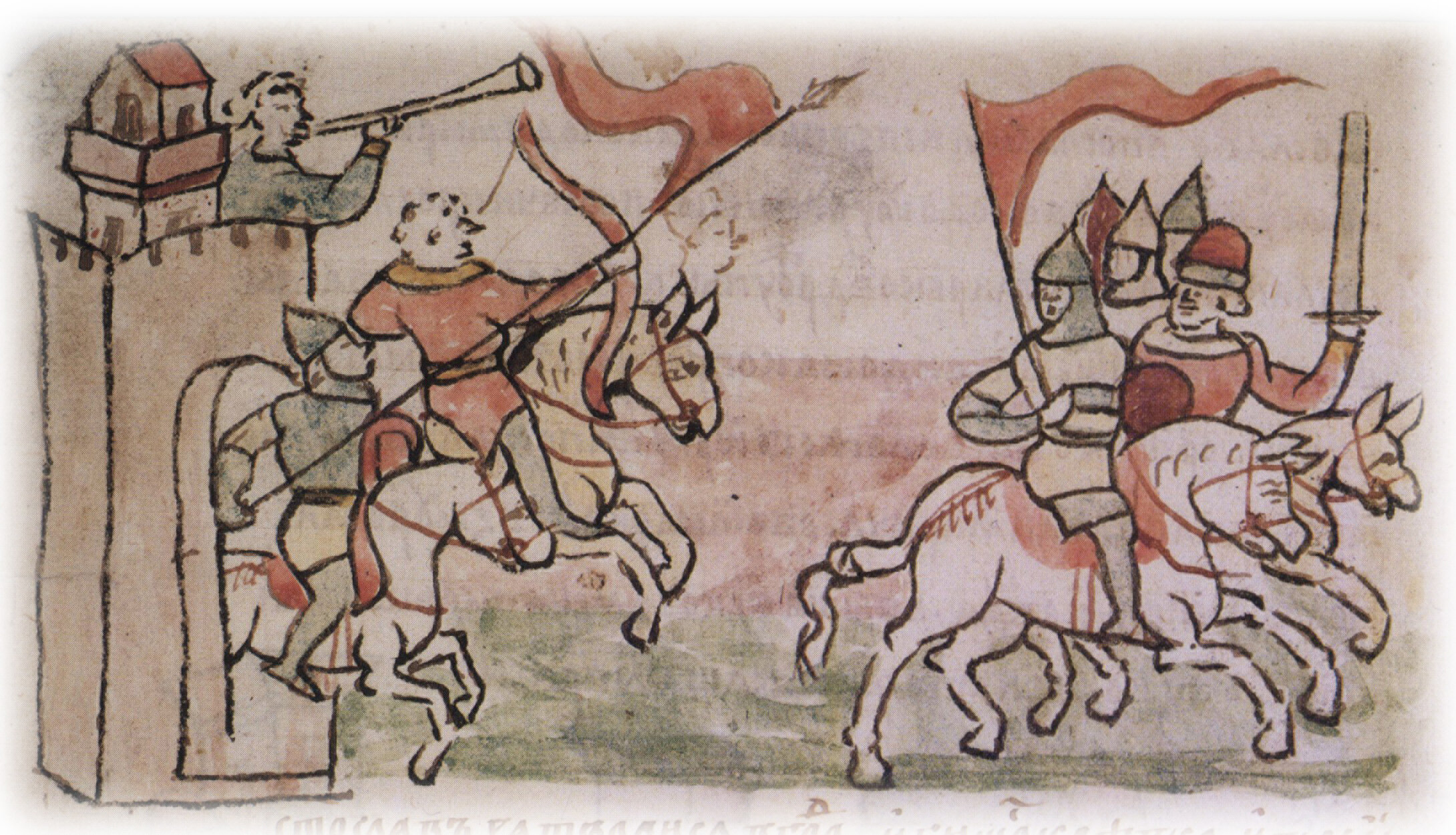 "Видев Всеволод бежавших от града, выеха из города, остави Святослава брата в граде, а сам еха к Коломне...".