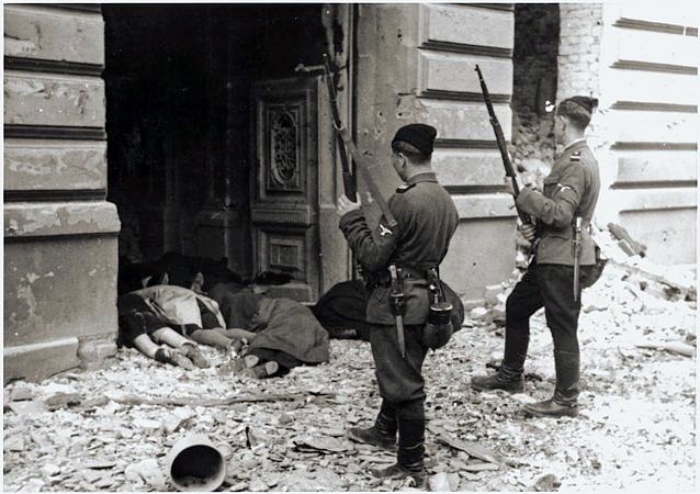 Украинские полицейские во время ликвидации Варшавского гетто. Апрель — май 1944 г.