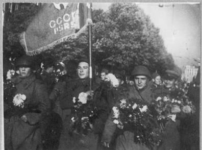 Солдаты 130-го Латышского стрелкового корпуса вступают в Ригу. 15 октября 1944 г.
