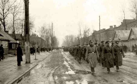 Солдаты Местной дружины Литвы под командованием офицера вермахта. ВильнюсДата создания: Март – апрель 1944 г.