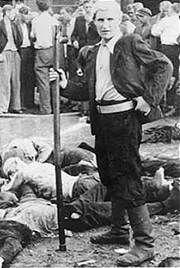Молодой литовец над телами убитых им евреев. Каунас, 27 июня 1941 г.