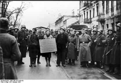 Литовские полицейские из 2-го батальона Schuma ведут на казньбелорусских партизан. Минск, 26 октября 1941 г.