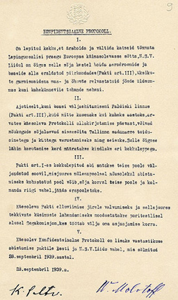 Конфиденциальный протокол к Пакту о взаимопомощи между СССР и Эстонской республикой.
