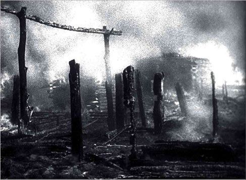 Белорусская деревня, сожженная во время карательной акции Дата создания: Февраль 1943 г.