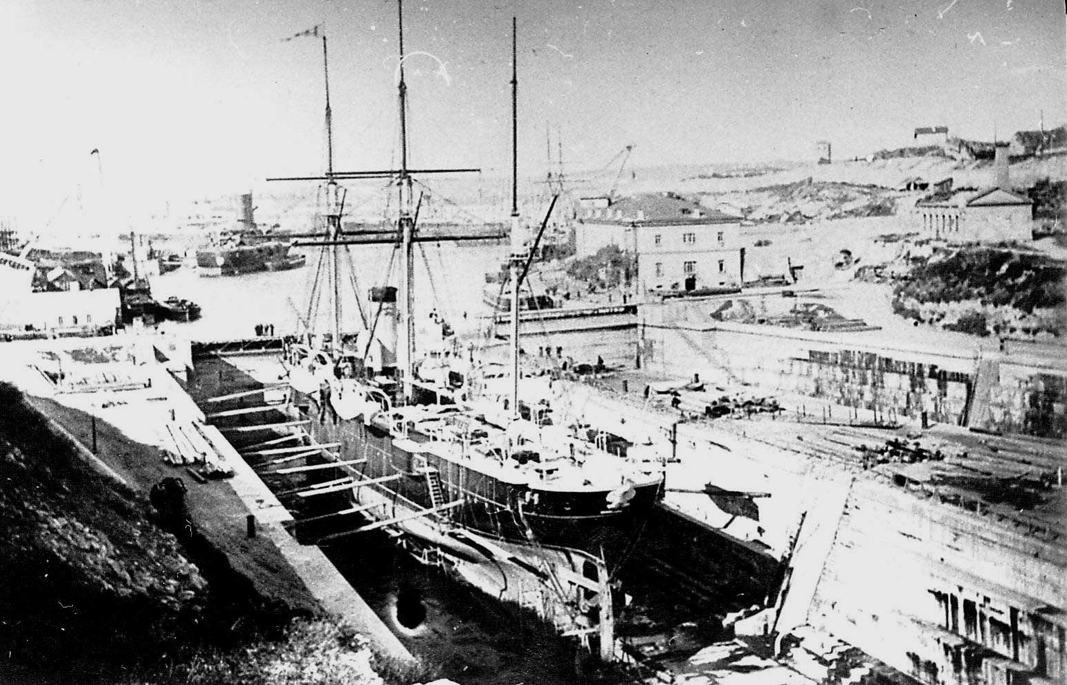 Крейсер Память Меркурия в доке в Севастополе (до апреля 1882 г. - Ярославль, после 1907 года - Блокшив №9).