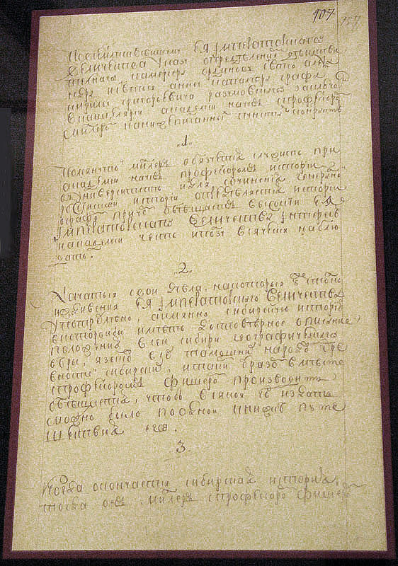 Миллер обязуется служить профессором истории в университете Академии наук, с освобождением от лекций и исполнением должности ректора, обязуется продолжать сочинение Сибирской истории, по окончании истории Сибири - заняться сочинением всеобщей российской истории, для чего назначается историографом. Миллеру дается жалованье в 1000 руб. в год. Условием подписания этого контракта была присяга историографа на русское подданство, которая состоялась 29 января 1748 г.